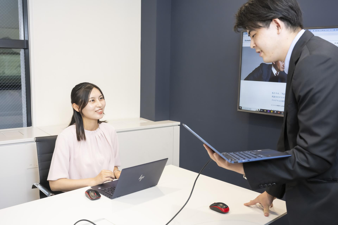 今回のインタビューでは、オンラインビジネス英会話「Bizmates」の営業を担当する2人に、入社を決めた理由や現在の担当業務、印象に残っている研修などについて語り合ってもらいました。