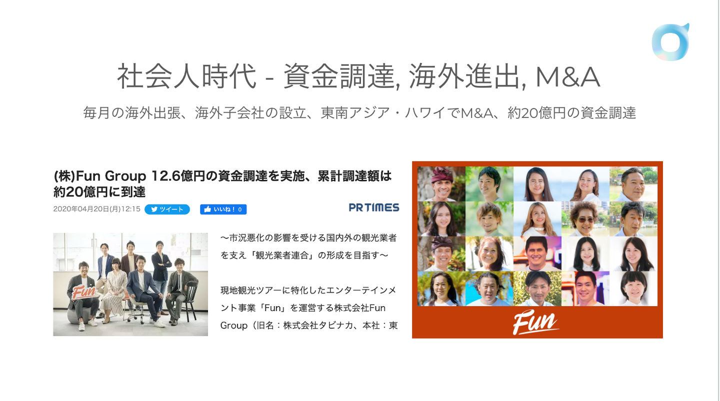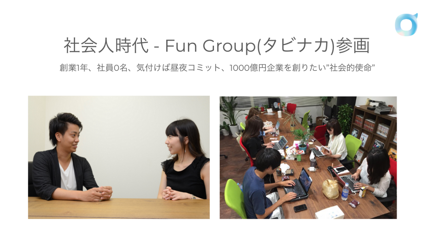 好きなことを好きな場所で〜、に満足し飽きてしまった私は夢中になれることを探していました。来年の今頃を創造できるのはなんか嫌で、これまで想像もし得なかったようなワクワクで満たしたいというか。そこで出逢ったのがFun Group という旅行×ITの会社でした。元々は月100時間くらい、業務委託で関わりますね、というところから、やればやるほど事業が伸びることに夢中になり、気付けば昼夜コミット、1号目の社員になってました。