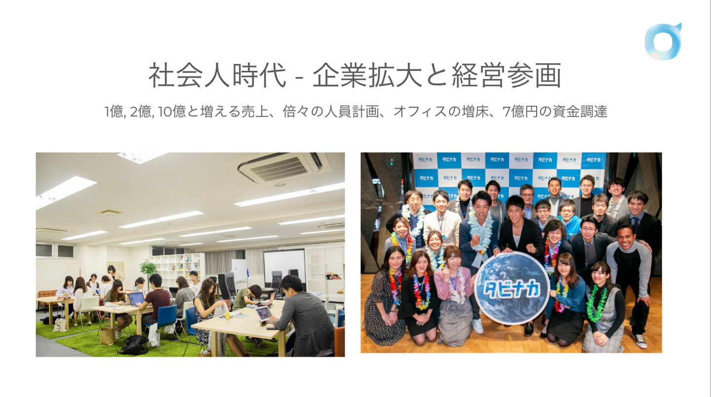 その後は順調に事業が伸び、1億、2億と増える売上、倍々の人員計画、オフィスの増床、資金調達などを経験しました。こちらの画像はプレスリリースからの引用ですが、武井壮さんにCEO(Chief Earth Pioneering Officer)に就任いただいたり、影響の輪がどんどん大きくなることを実感していました。