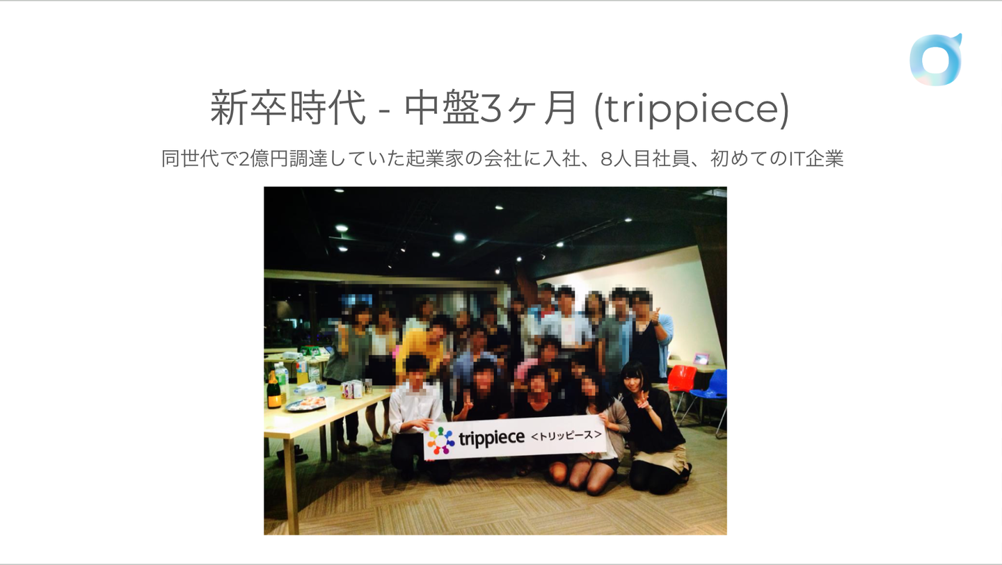 非常に恵まれた環境でしたが、入社6ヶ月でH.I.S.は退職することに決めました。理由はスライドに答えがあるんですが、在職中にあの「すごい同世代」が気になってしまい。実は「一緒に働かせてもらえませんか!」というメールを社長直々にお送りさせていただいたところ、面談をさせていただけました。私が総合旅行業務取扱管理者という国家資格を持っていたことが採用の決め手になったみたいで、ITスキルなど何も持ち合わせていない新卒ペーペーの自分が、ITスタートアップに転職できることになりました。8人目の社員でした。30000人以上の会社から、8人規模へ。凄い人たちの中に紛れて、何とか価値を発揮しないとな、と背筋が伸びました。