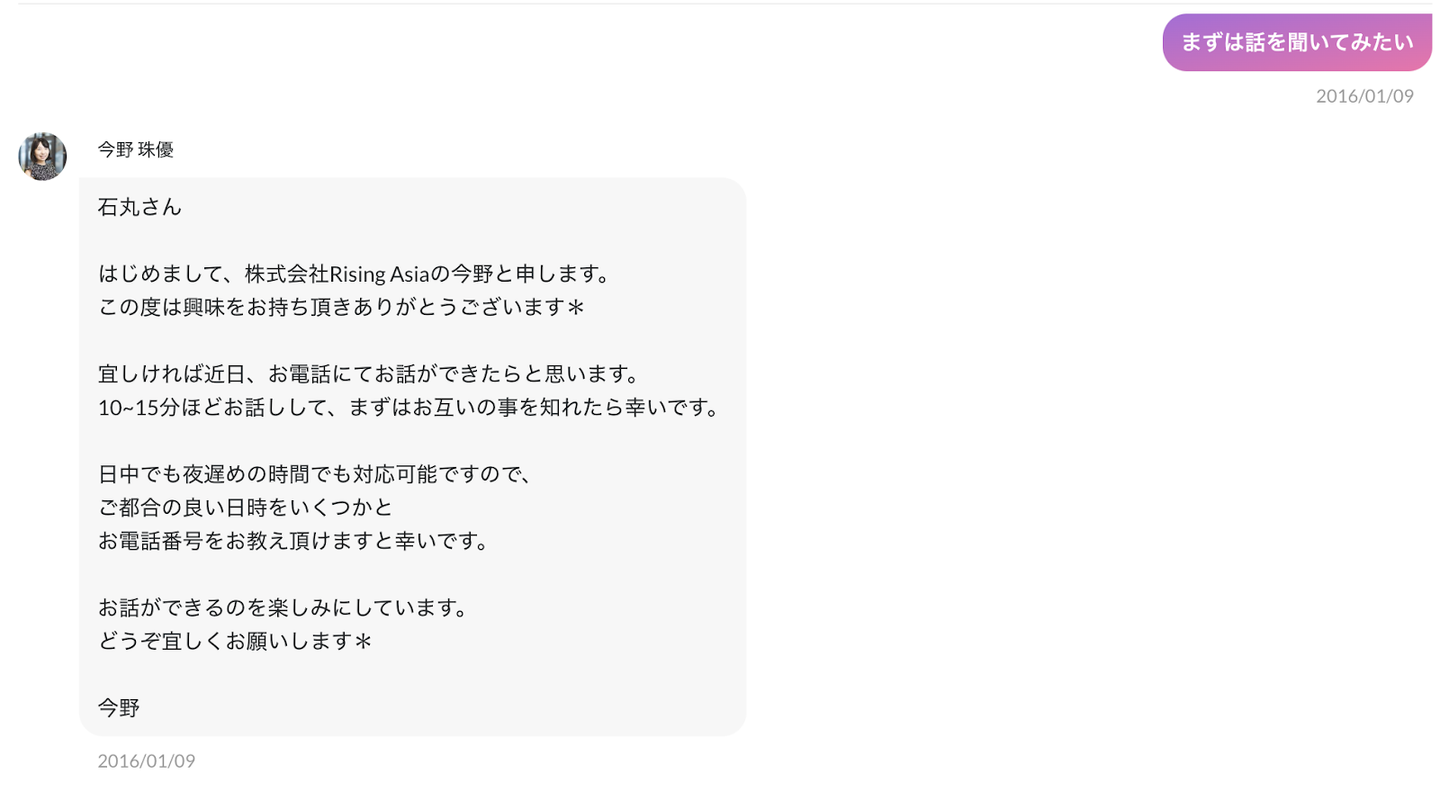 藁をも掴む思いで、当時はまだ珍しかったWantedlyに登録。今野が働いていたFunGroup(当時はRisingAsia)と出会います。