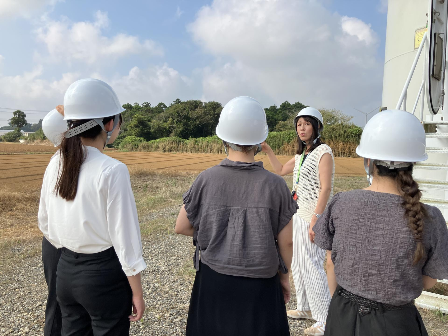 8月25日に当社の風車見学会を開催いたしました! 残暑厳しい中、27卒の学生さん4名が参加してくださり、笑顔と学びの溢れる充実した一日となりました!1日の様子をご紹介いたします😊