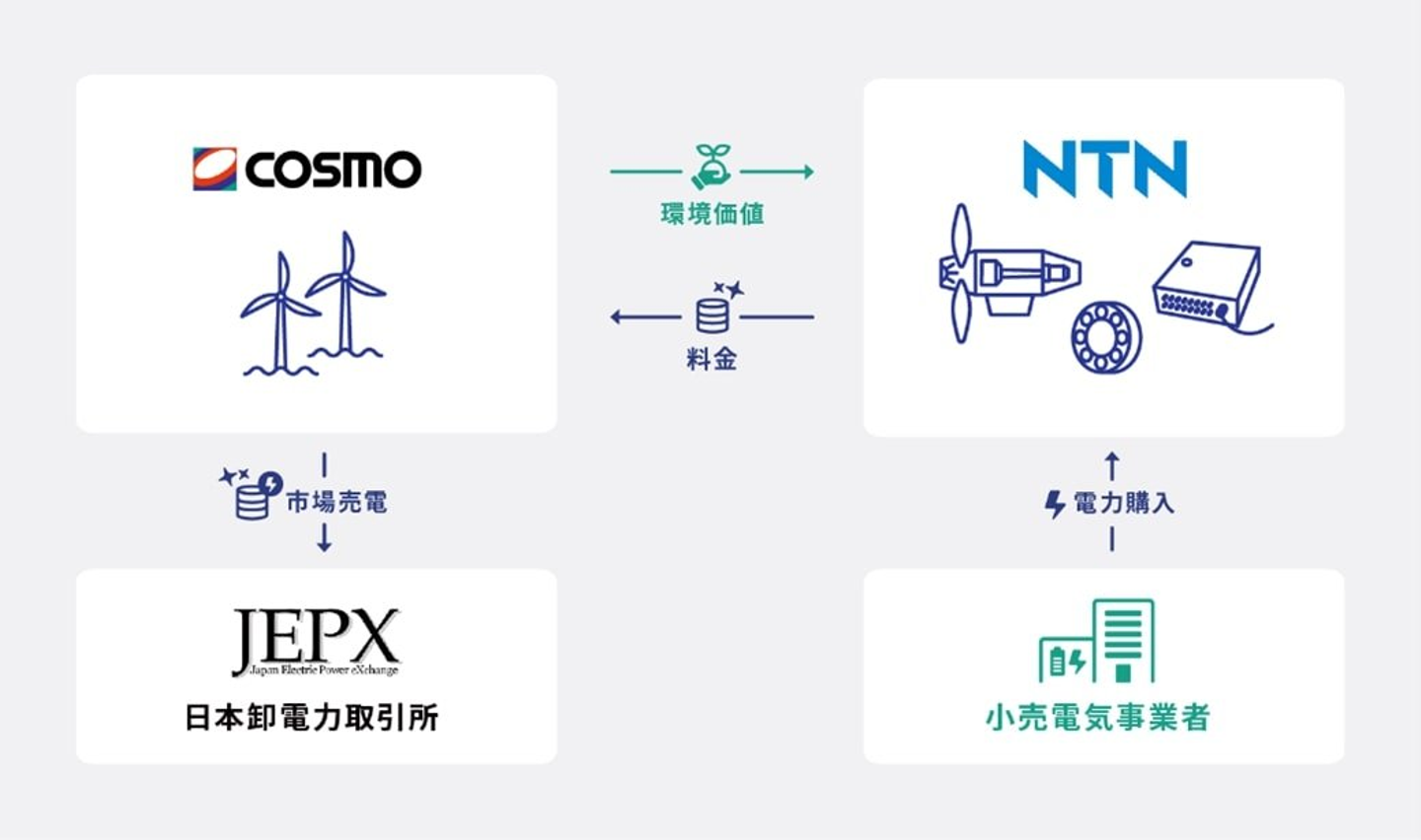 コスモエコパワー株式会社とNTN株式会社は、2025年5月7日付で、NTNとして初となるバーチャルPPA(発電量に応じた環境価値のみを直接購入する契約)を締結いたしました。