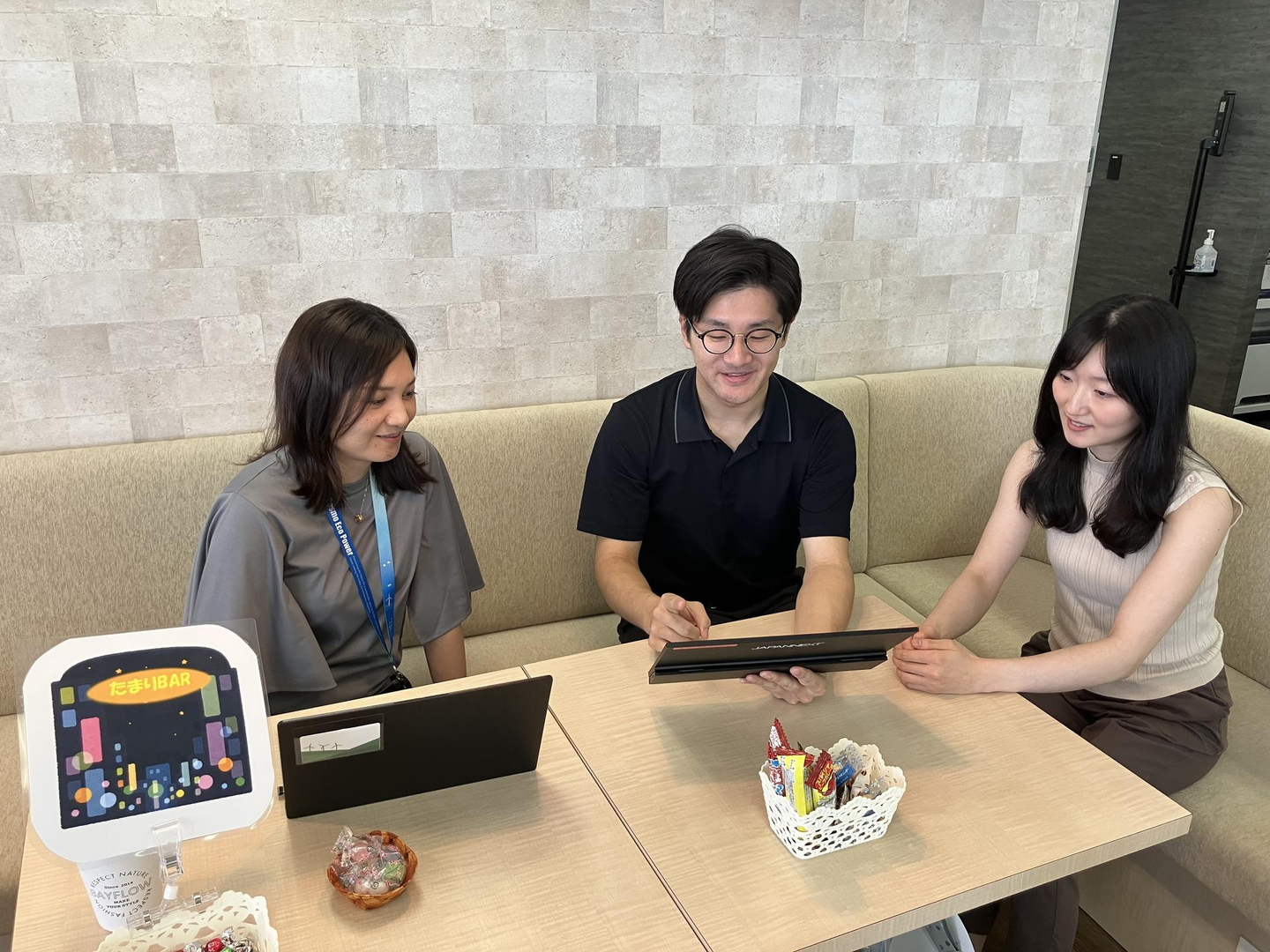 - たまりBARの開催🍻(社長、役員、従業員とのコミュニケーションの場として人事部主催で開催) 執務スペースのすぐそばにあるこの👇スペースで開催しました。