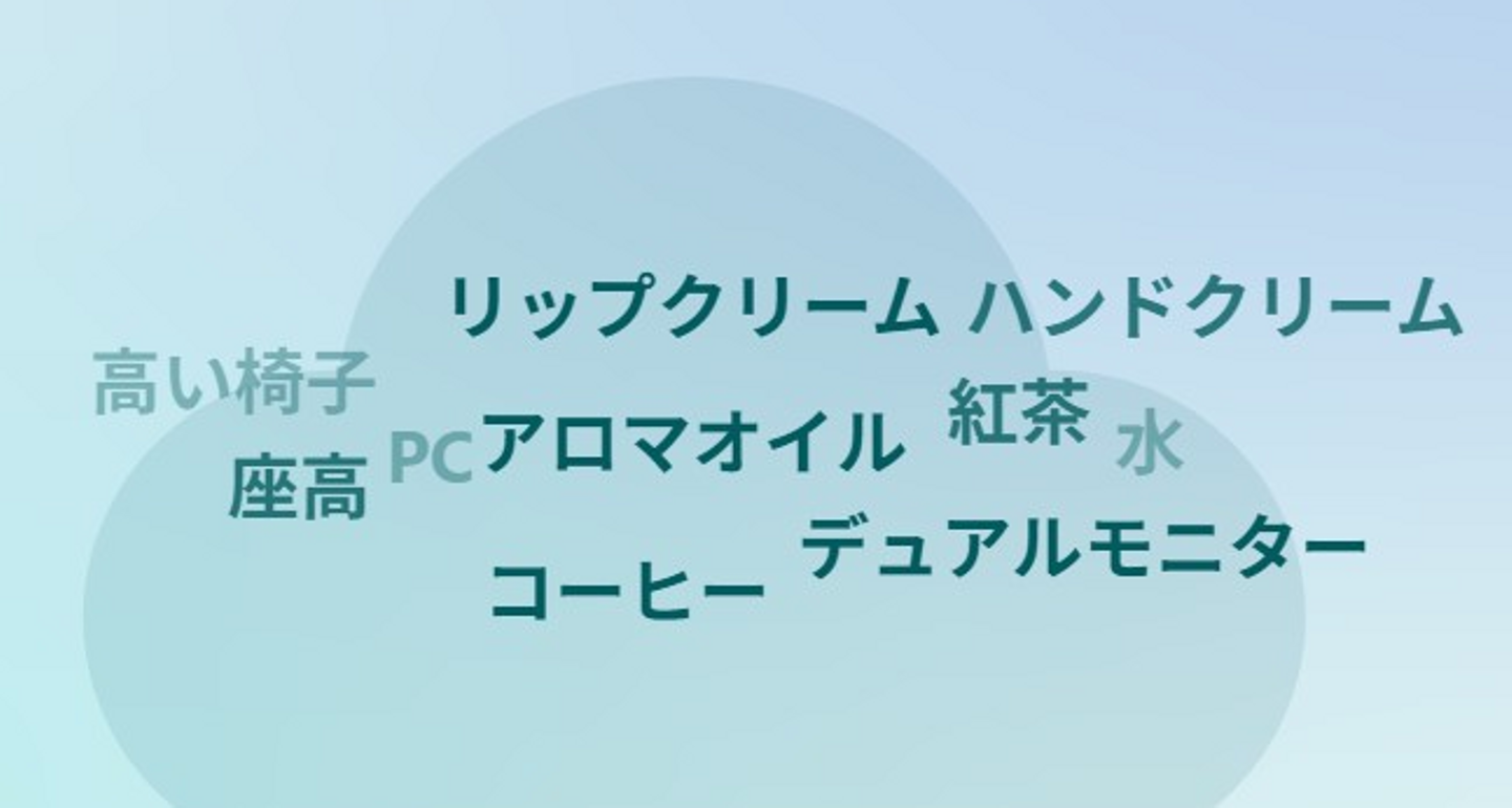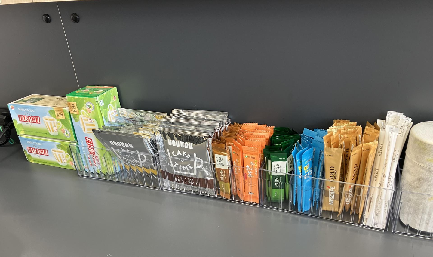 それぞれ、こだわりがあるようですね✨ お菓子・紅茶・水・コーヒーという回答がありますが、オフィスにはウォーターサーバーや、ドリップコーヒー・パウダータイプのコーヒー・お茶などもそろっています。