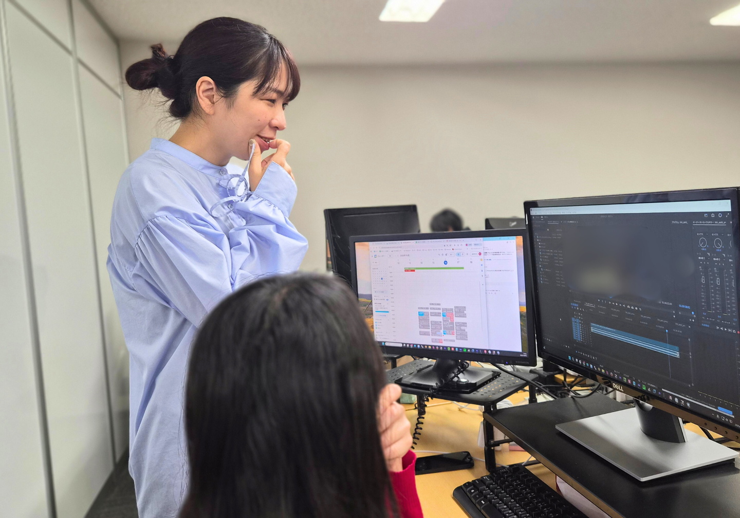 「例えば、岡本さんと佐久間さんの認識が少しずれているな、と感じた時に間に入ったり。他のチームとの連携が必要な時に、私が先に話を通しておいたり。私が間に入ることで、みんなが少しでも仕事をしやすくなるなら、それが一番いいのかなと思っていて。」