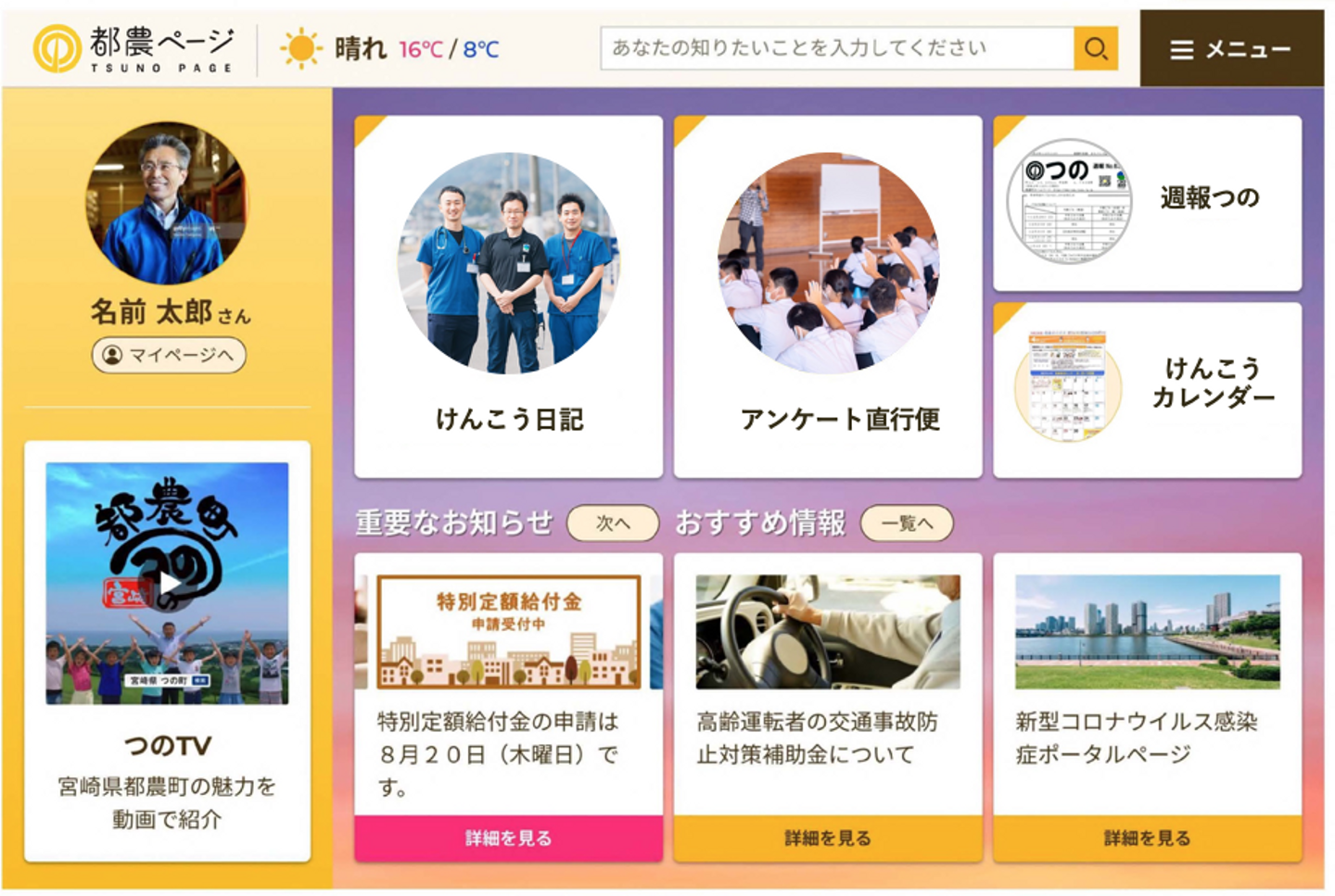 都農町では、4月から特に65歳以上の高齢者と15歳以下の子どもたちを戦略ターゲットに、町民双方向型ポータルサイト『都農ページ』をはじめます。