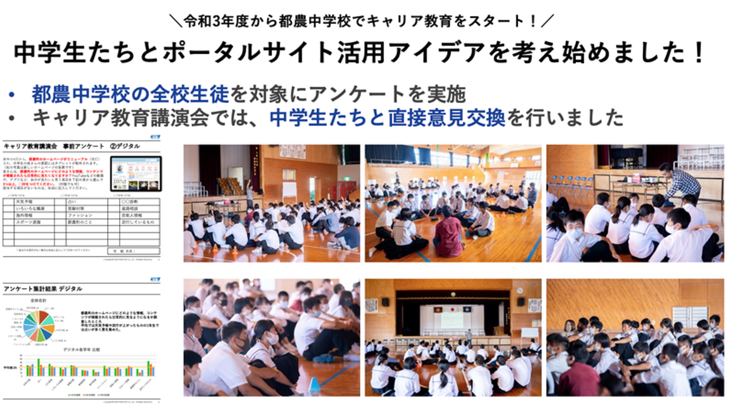 僕らがデジタル・フレンドリー推進とほぼ同じタイミングで、都農中学校のキャリア教育に携われることになり、デジタル推進と連動した来年度のカリキュラムを企画中です。