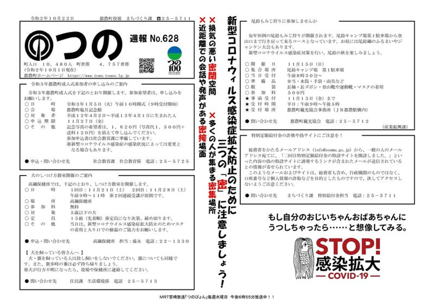 「コミュニケーション率」には「市政だより」なども含まれるのですが、1万人の町、都農町では「週報つの」という町内で知らない人はいない広報誌があります。