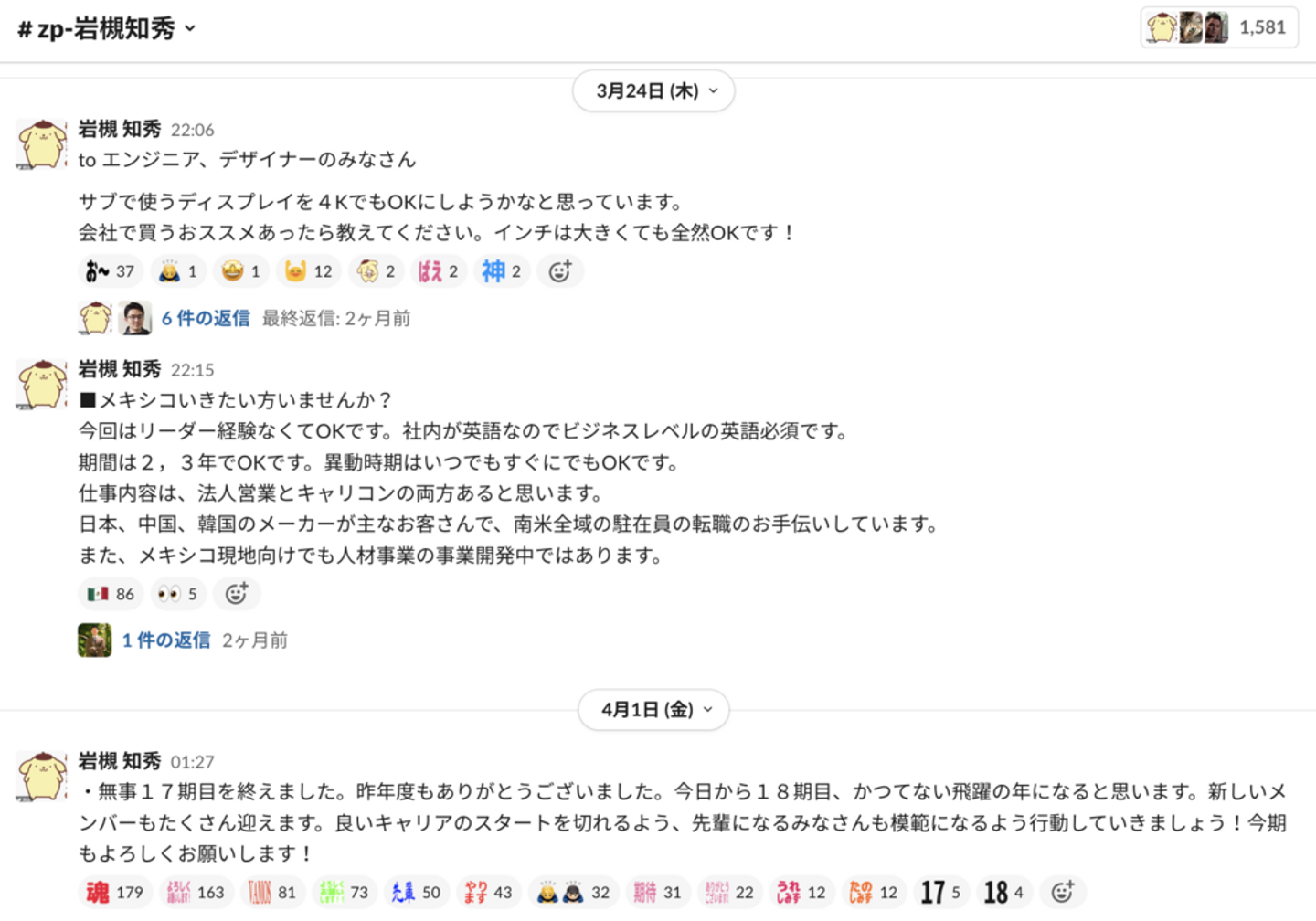社長室をもつことなく社員と同じフロアに机を並べて仕事をしています。社員とのやりとりもオープンチャットでおこない、予定をいれたいときはグーグルカレンダーで予定を確認して自由にミーティングを組むこともできます。