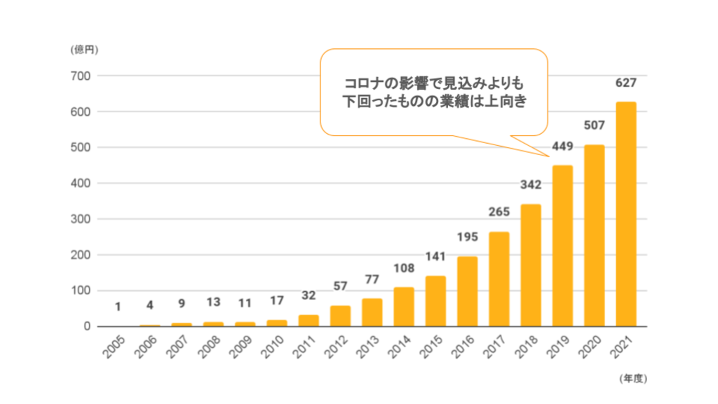 2005年の創業から右肩上がりの成長を遂げるレバレジーズでは、平均年齢28歳(※1)という若者たちが年商約627億円(2021年5月時点)の急成長企業を支えています。 昨年度はコロナの影響で見込みよりも売上が下回ったものの、直近5年の年率平均売上は120%を超え、安定した成長を続けています。(※1)2022年4月時点の正社員の平均年齢。