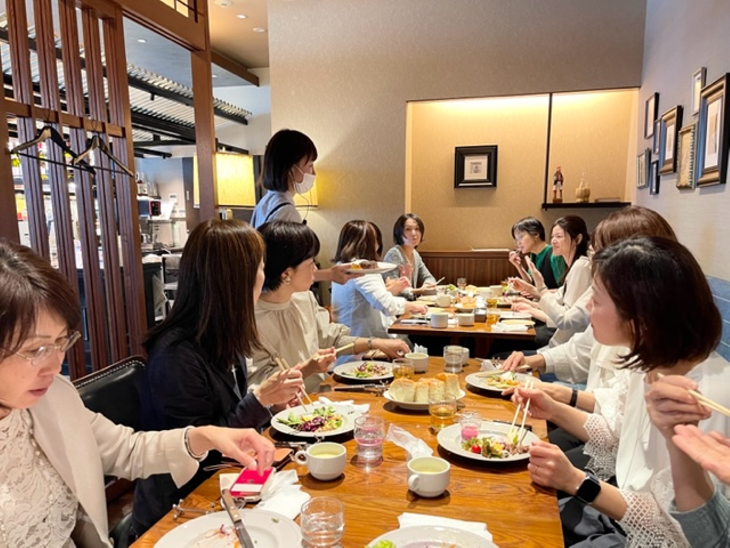お待ちかねのランチ会は、リーダー会の楽しみのひとつ。今回は、オフィスお隣の高島屋大阪店にある「イカリヤ食堂オオサカ」さんへ。