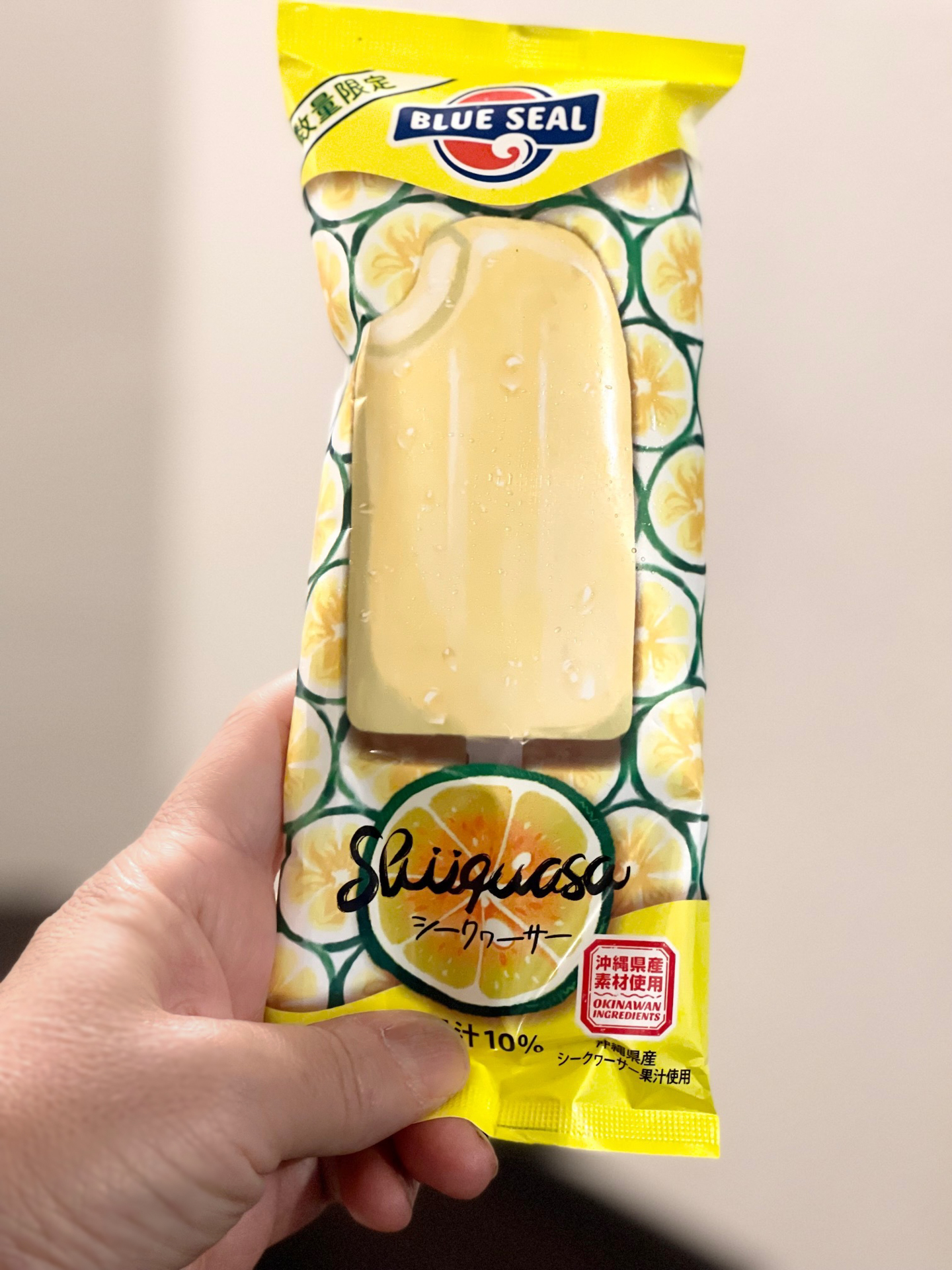 ↓ 甘いものは別腹ですよね~!ホテルに戻って沖縄のご当地アイスブランド「ブルーシールアイス」のシークヮーサー味をペロリ!すっぱ過ぎず、さっぱりしていてお酒の後にピッタリでした!