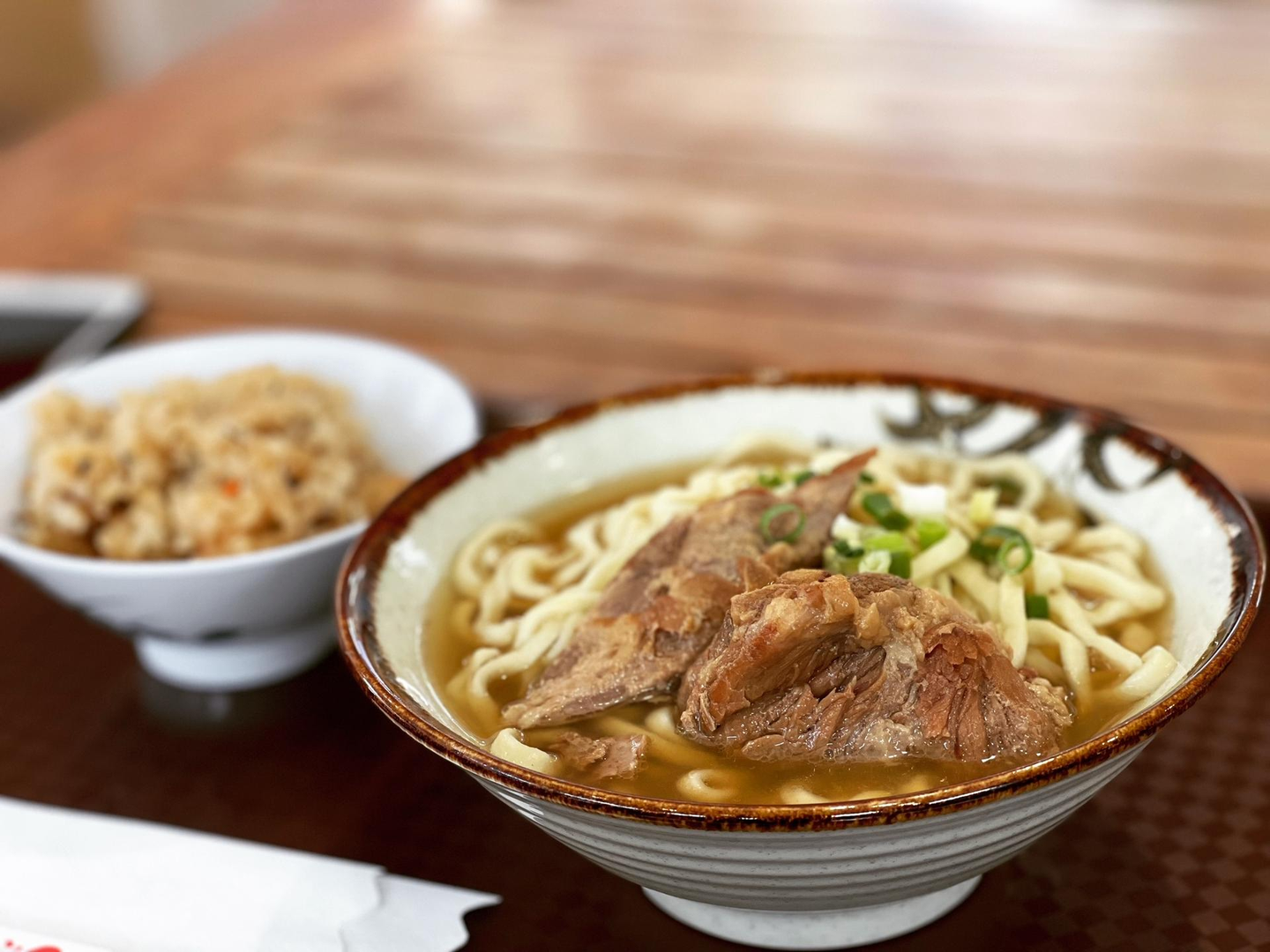 「軟骨ソーキそば」と沖縄風炊き込みご飯「ジューシー」のセットをいただきました。
