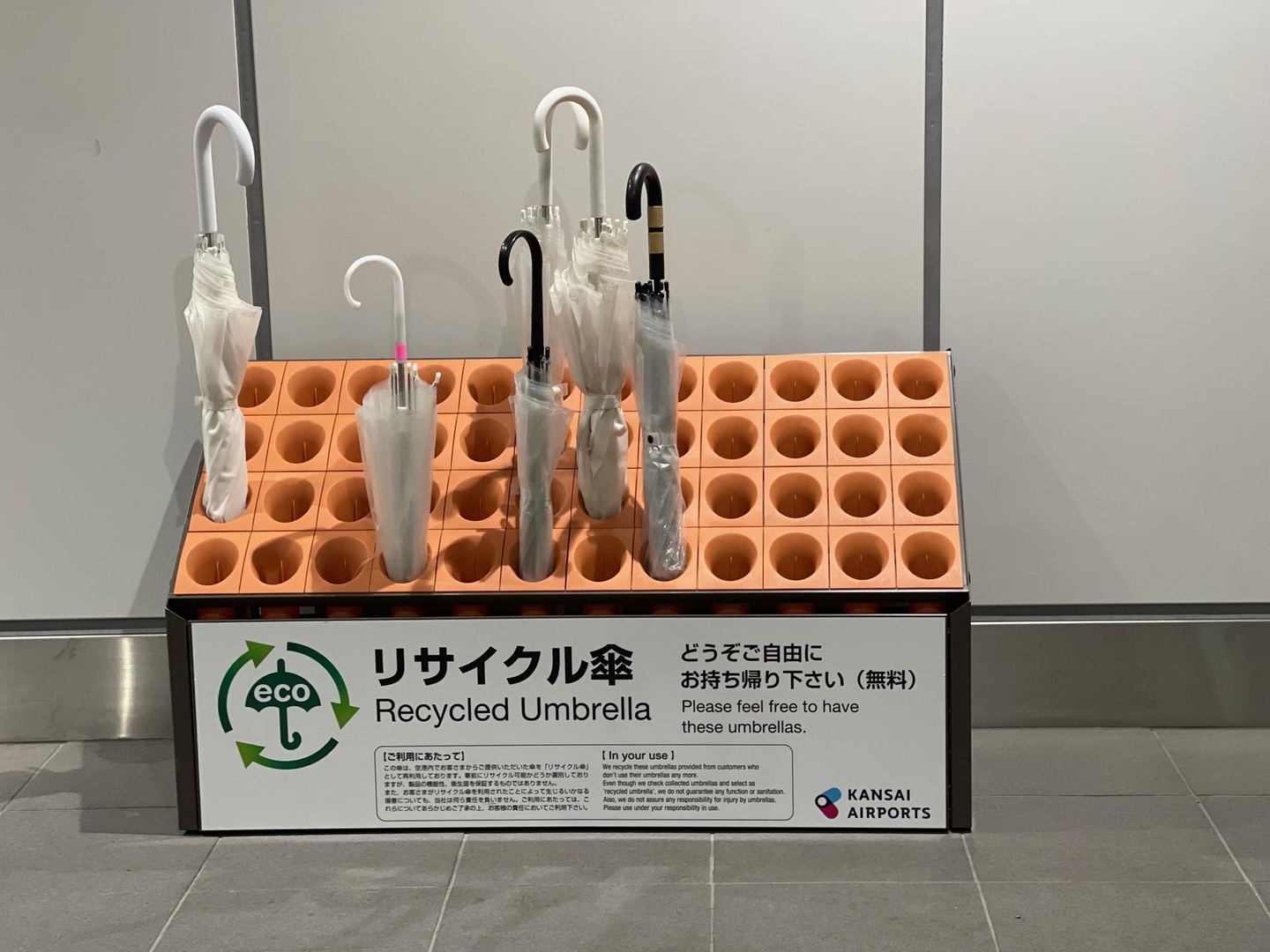 不要な傘や捨てられた傘から再利用できるものを選り分けて、急な雨に困っている空港利用者に無料で提供しているそうで、優しい心づかいと環境への配慮に感動しました。