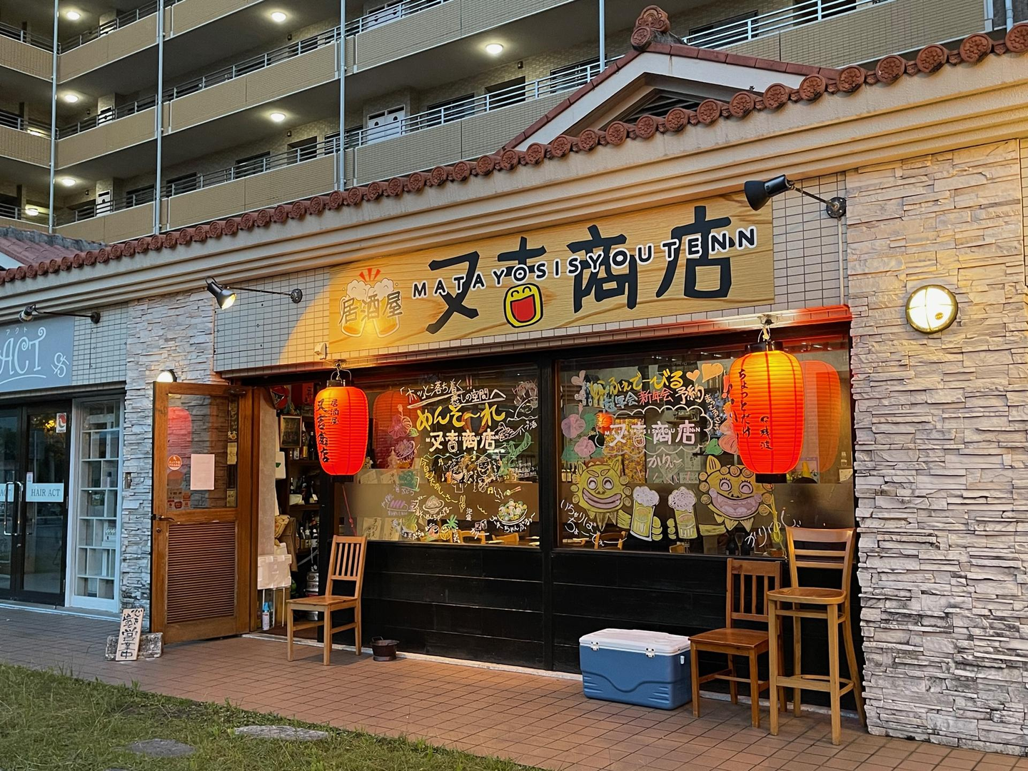 ホテル近くの居酒屋「又吉商店」さんへ!沖縄の家庭料理やごちそうで人気のこちらのお店は、店員さんもとっても気さくな方で、観光客(お仕事?)や地元の人たちでとてもにぎわっていました!