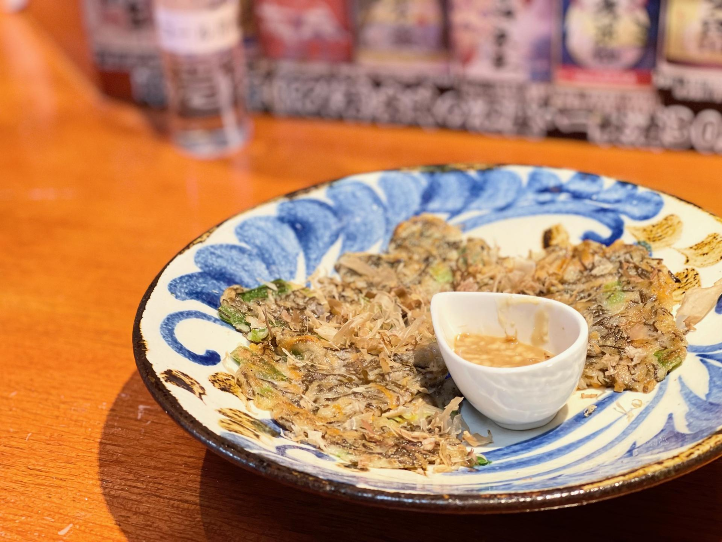 ↓ こちらは「もずくヒラヤチー」。ヒラヤチーは沖縄式のお好み焼きのことで、もずく、ニラ、ニンジンが入っていました。