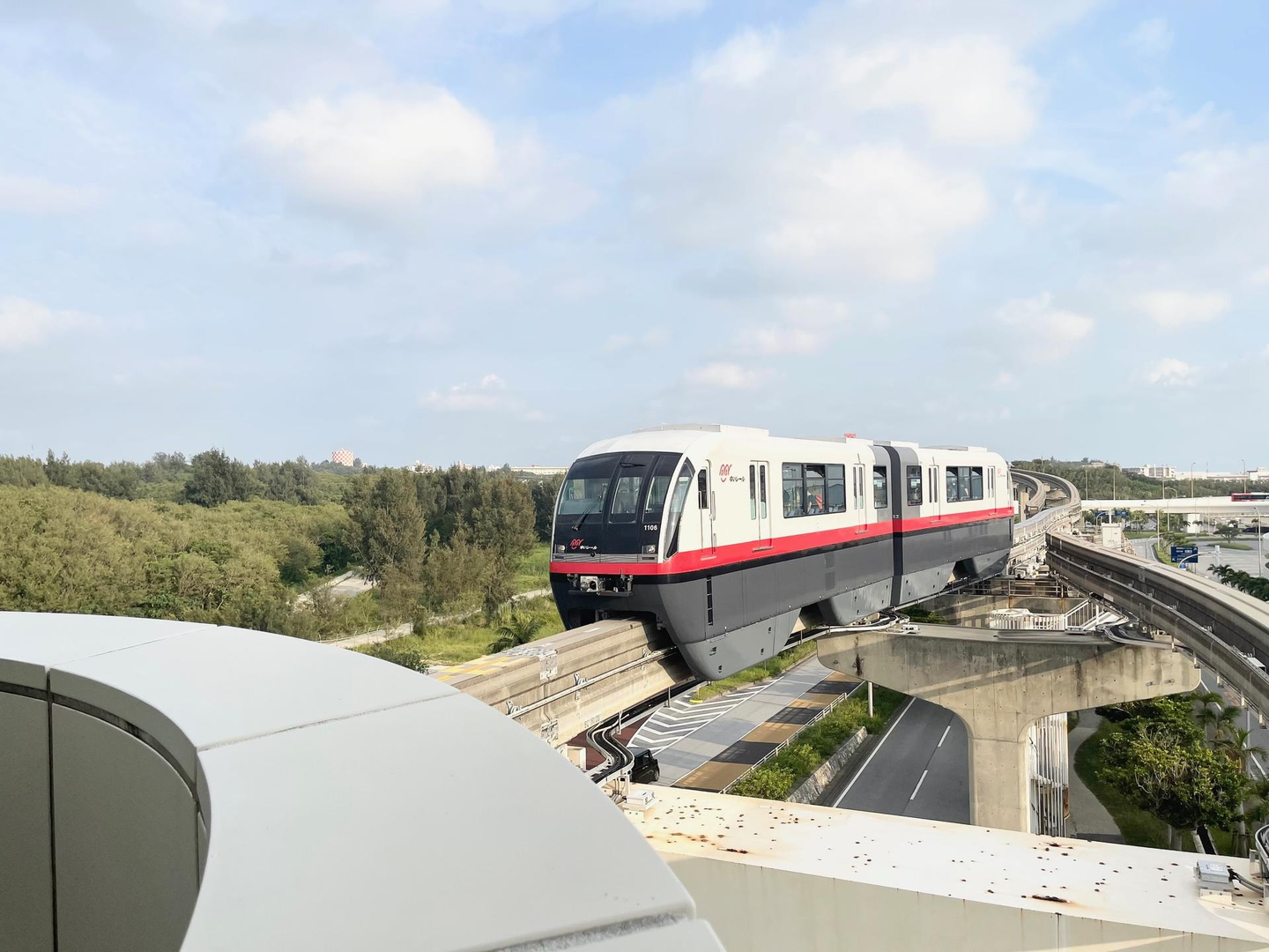 地元の人からは親しみを込めて、沖縄の方言「ゆいまーる」”助け合い” にかけた愛称「ゆいレール」と呼ばれているんだそうです。車体は首里城の伝統的な本朱塗りを基調としたシンボルカラーの赤いラインがひかれていて、ころんとした見た目も可愛いデザインですね。