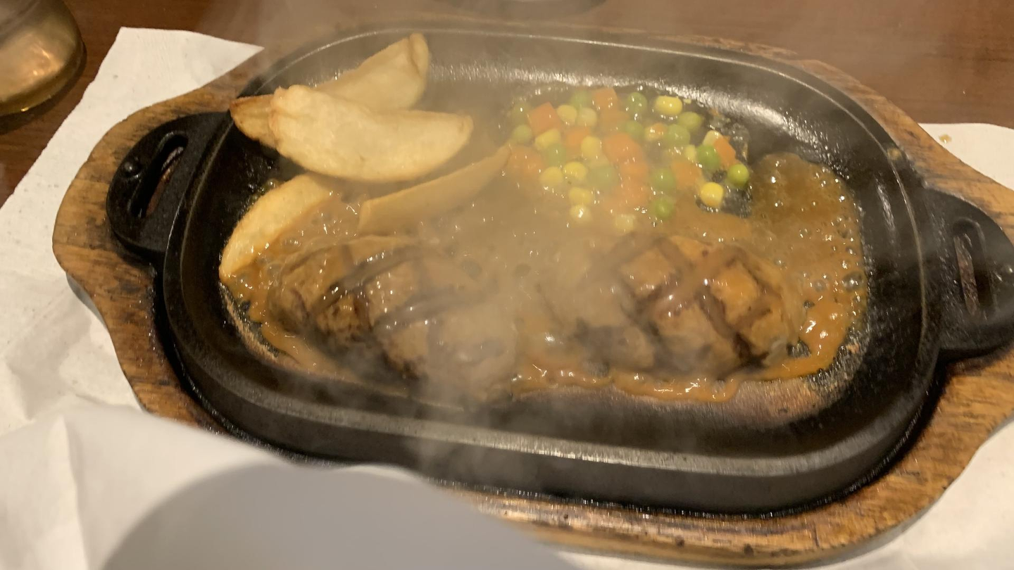 「アルカサール 神保町店」のハンバーグ。熱々でおいしそう…!