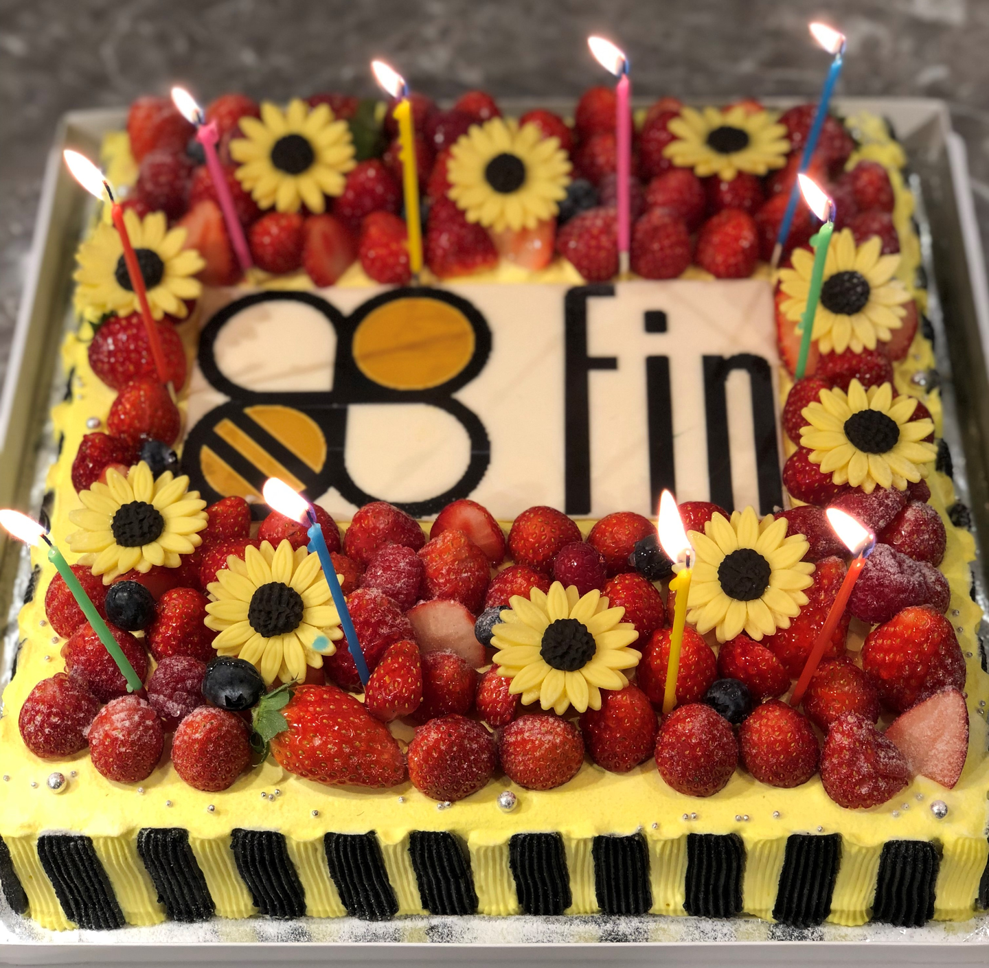 finbeeロゴのハチにちなんだ華やかなケーキは、見た目も味も好評でした!