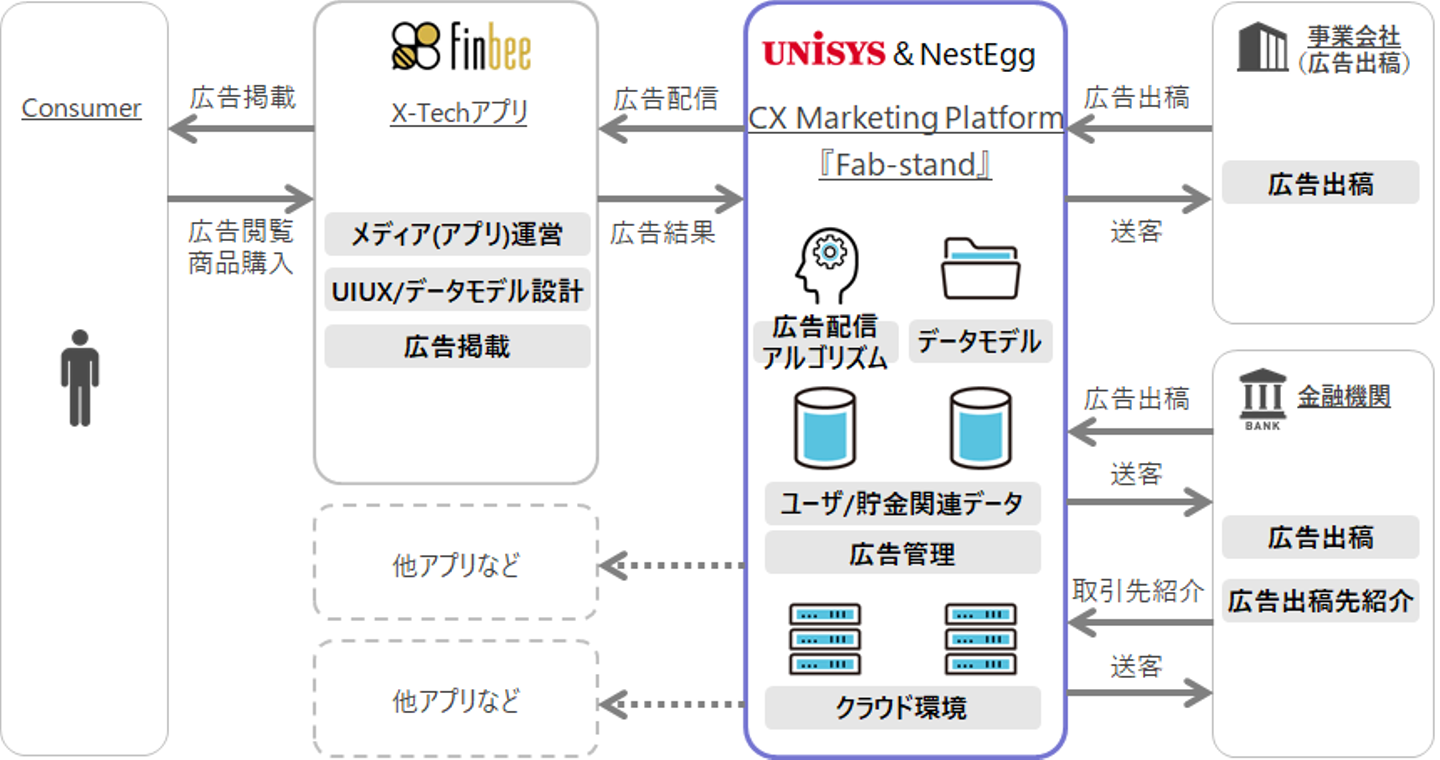 一般的なメディアは、自社サイト内の閲覧履歴などに基づいて広告を出すというのが主流です。『Fab-stand』は、finbeeの特性である、ユーザーが能動的に入力したデータ(貯金目標、金額、期間など)を活用して広告を出せる点が大きく違っています。