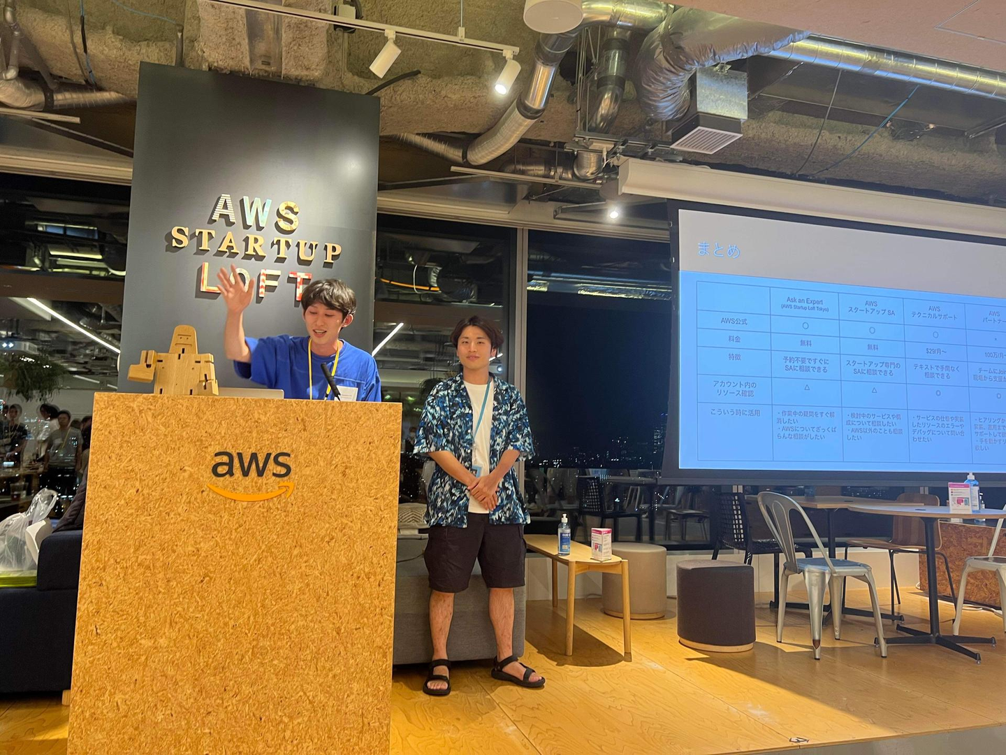 1年ほどスタートアップの真似事など色々チャレンジしてみましたがうまくいかず迷走していたところ、AWSのリクルートチームから「AWSのソリューションアーキテクトとして働きませんか?」というオファーをいただきました。「これはチャンスだ」と思いオファーを受けてみたところ受かってしまったので、一時会社の方は休眠してAWSのソリューションアーキテクトとして修行することになりました。これが人生の2つ目のターニングポイントとなります。