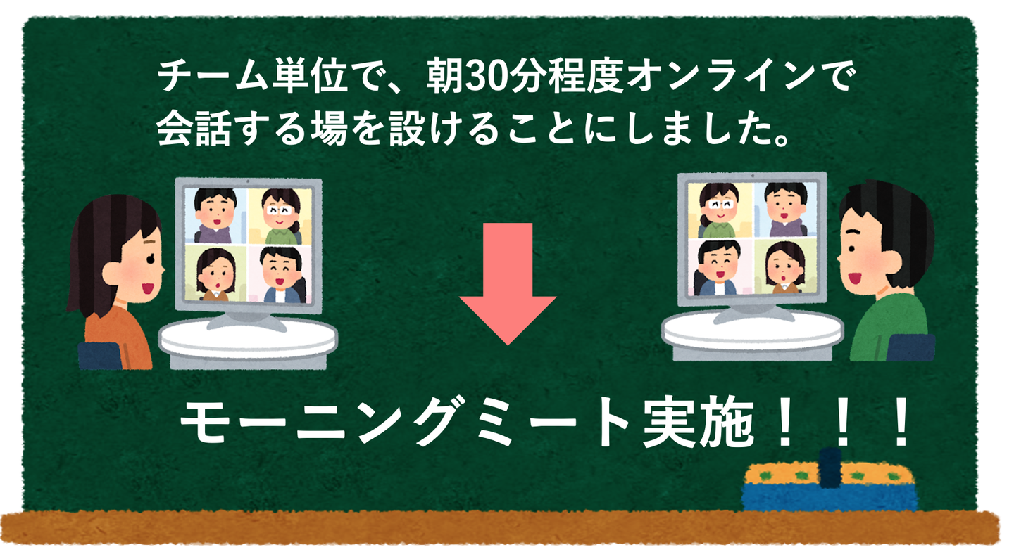 在宅勤務をするメンバーも増えたことで始まった取り組みではありますが、まだまだ試行錯誤が必要な取り組みではあります。