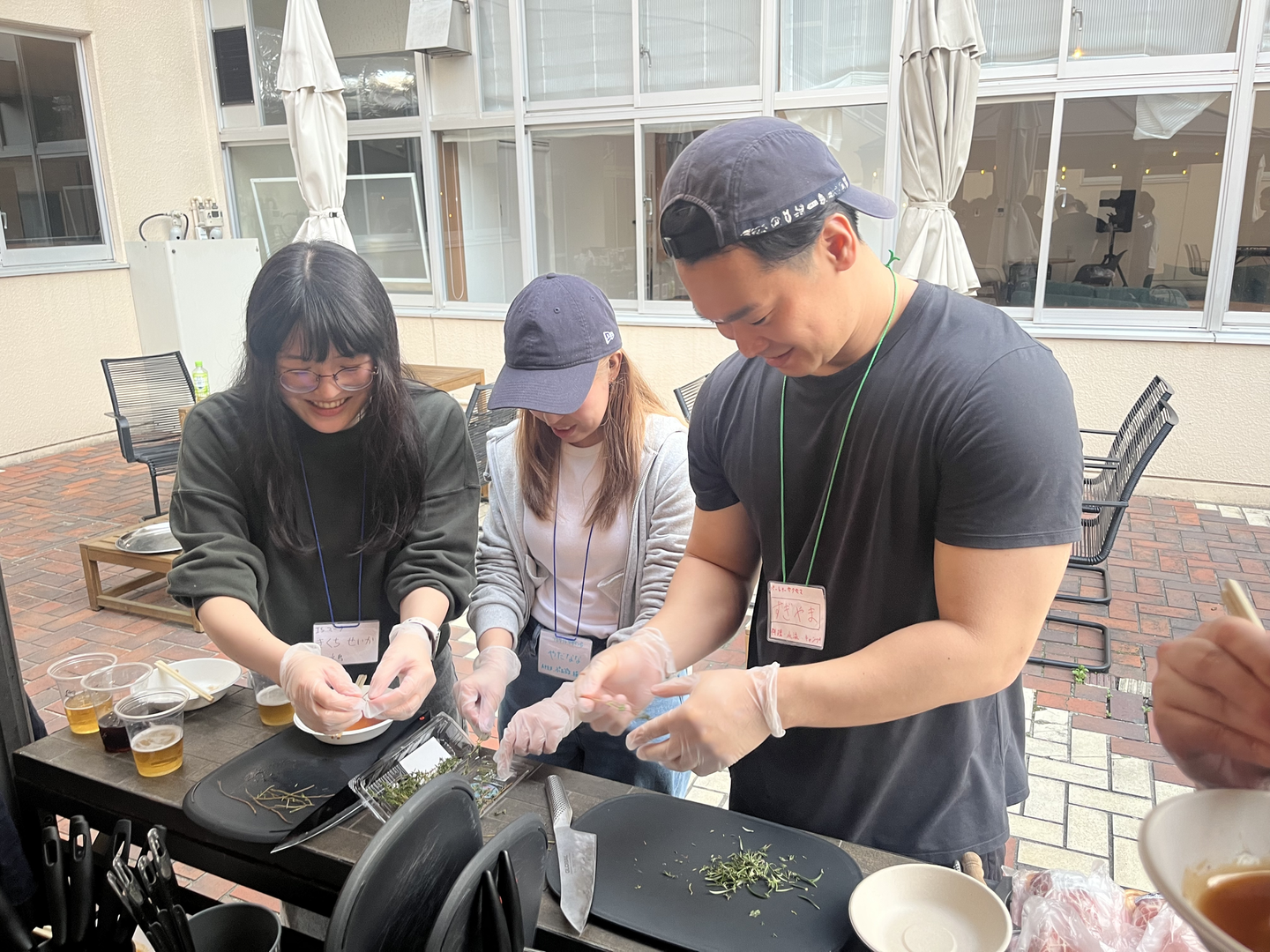 みんなで火を起こしてお肉を焼いて、普段は会わないメンバー同士でも美味しく盛り上がりました。