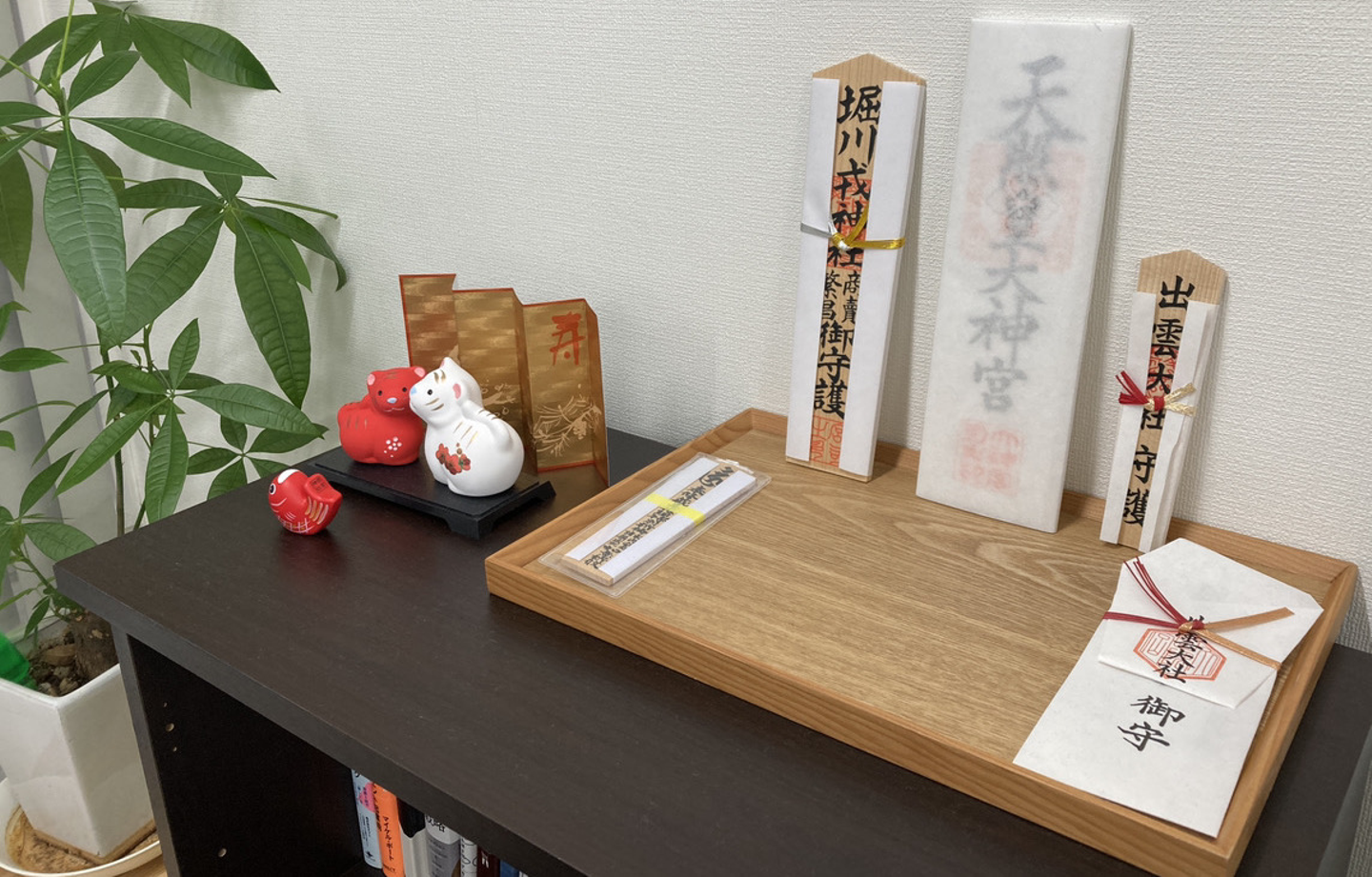 験担ぎではないのですが、神社に必ず毎週お参りにいきます。また、簡単ではありますが家に神棚を置いているので、そこに毎朝手を合わせるようにしています。日本古来のお参りをしている感じですね。会社にもお札を置く場所をきちんと用意してあります。
