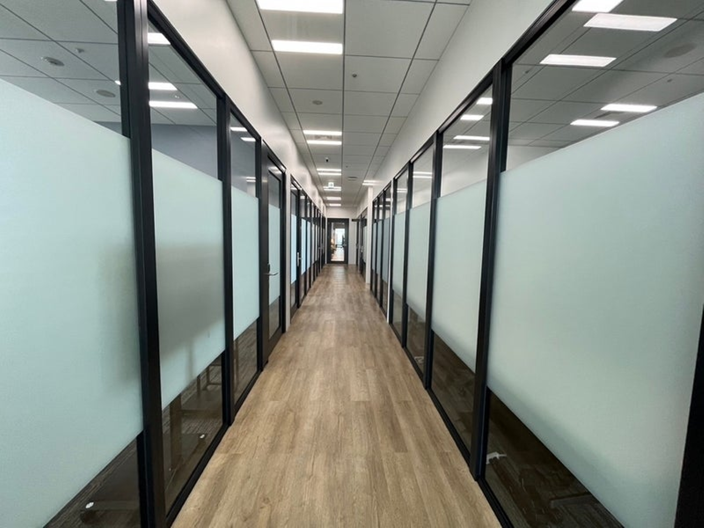 廊下を通って専有スペースに向かいます。廊下がかなり長いです。