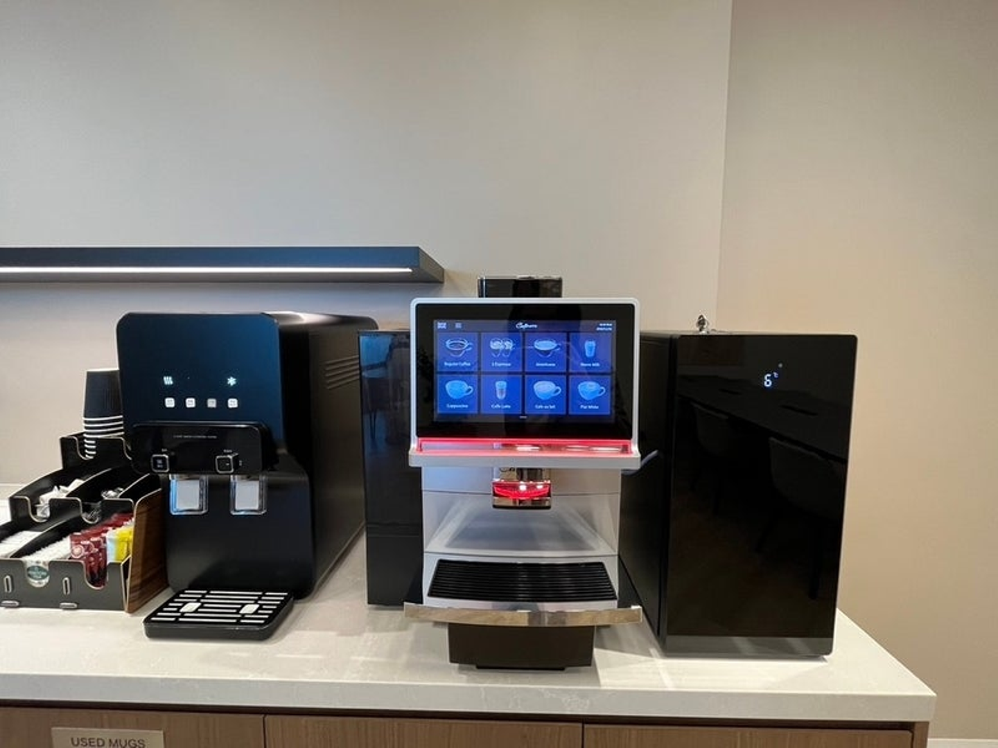 共用スペースのドリンクバーは自由に使うことができます。コーヒー、カフェラテ、アメリカーノ、抹茶ラテなどメニューも豊富。インスタント感がなく、とても美味しいです。