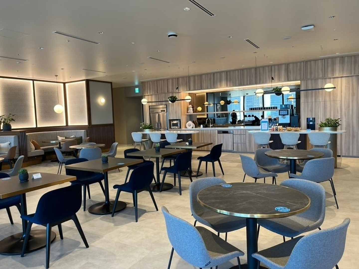 窓際にも席があります。見晴らしのいい景色を見ながらちょっとしたMTGもできそうです。夜景も綺麗でしょうね。