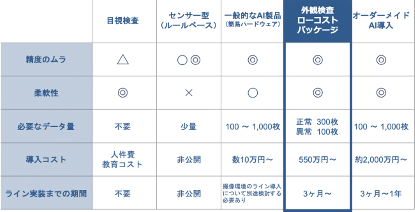 図2 外観検査に関する比較表(スカイディスク調べ)