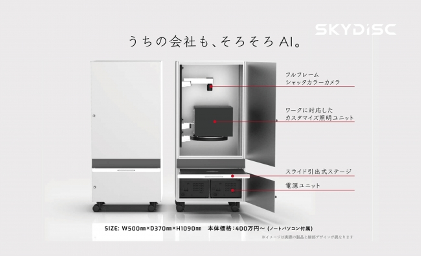シナプスギヤの外観検査機は、画像データからAIが特徴を抽出することを前提に開発されています。そこで、製造業でのデータの扱いを得意とするスカイディスクが、シナプスギヤのハードウェアを取り扱うことで、学習データの取得からAI開発までを一貫して実施できる体制を構築。短納期・低コストでのAI外観検査機の現場導入を実現し、ローコストパッケージとして提供することにいたしました。