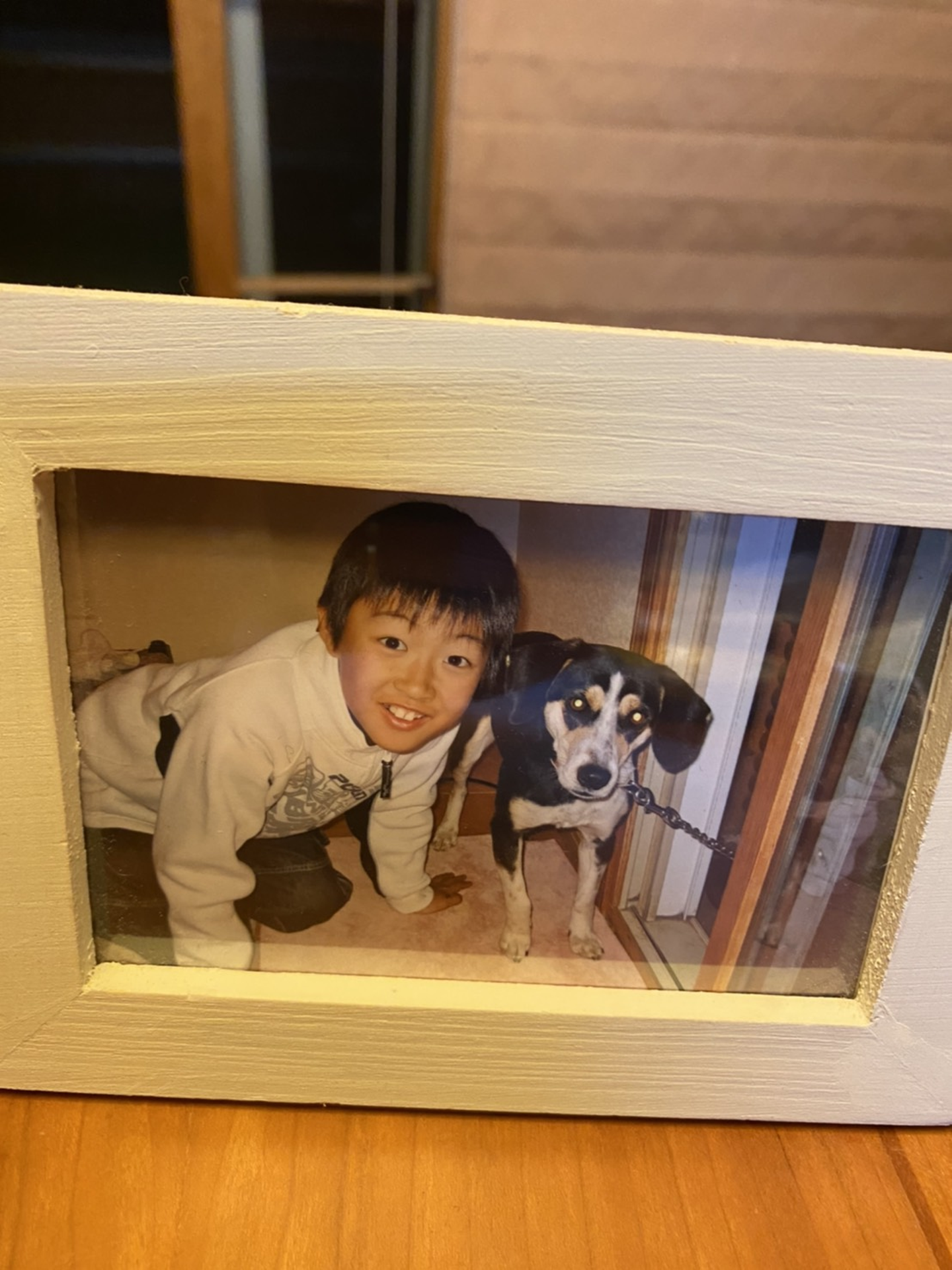 愛犬ララと生意気少年(当時10歳の長谷川)とのツーショット
