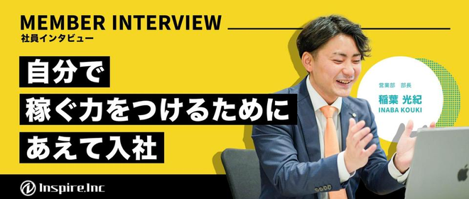 「本物の経営者」の匂いを嗅ぎ分け、株で稼いだ200万円を握りしめて夜の世界へ飛び込む。彼を動かしていたのは、理屈ではない。「強者になりたい」という剥き出しの本能。今回お話を伺ったのは、営業部長の稲葉さん。事業部が急拡大し次なるステージへ向かう中で、15名のメンバーを率いながら組織の仕組み化や人材育成に情熱を注いでいるプロフェッショナルです。営業の枠を超えてクライアントの経営課題に深く寄り添い、共に未来を創る稲葉さんに、現在挑んでいる「育成の壁」や将来のビジョン、そしてインスパイアで働く醍醐味について伺いました。「稼ぐ力」の本質を追い求めた学生時代。投資と“現場”で触れた、経営者の器――稲...