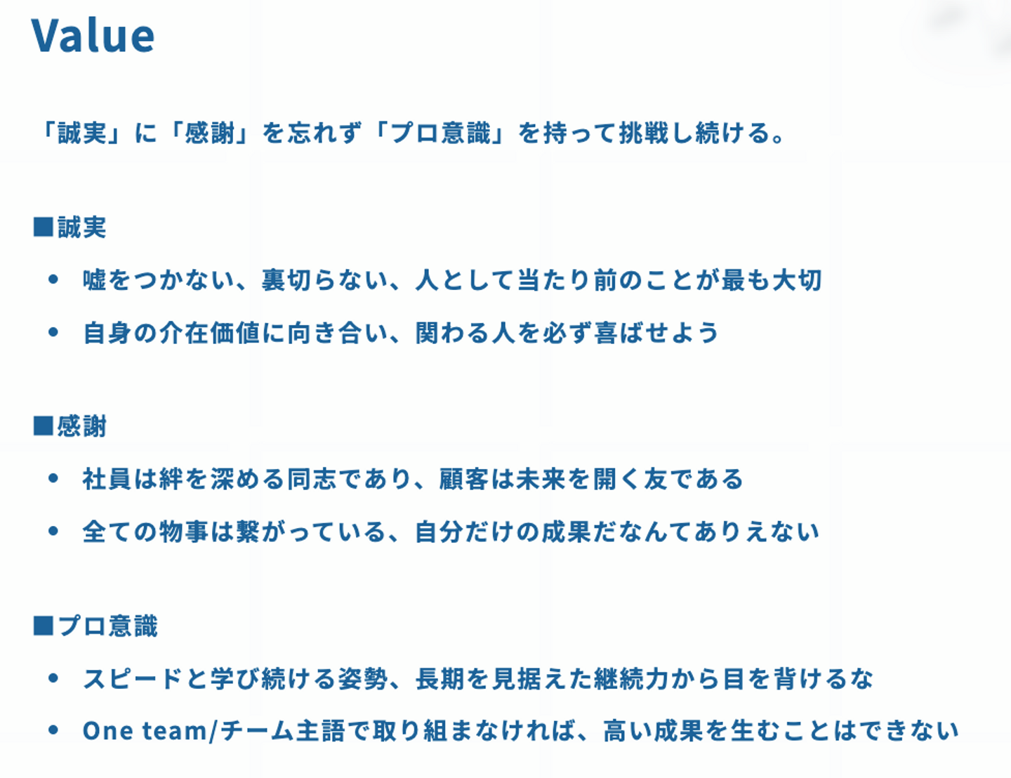 組織のルールや価値観を最も理解し、実行する存在でありたいです。弊社には「誠実・感謝・プロ意識」という行動指針がありますが、これらを単なるスローガンにするつもりはありません。
