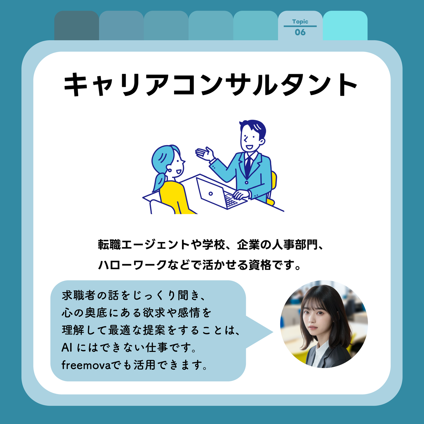 企業と社員との架け橋となり、面談での丁寧なヒアリングを通して最適な就業先を提供し、一人ひとりに向けた、就業後のキャリアサポートを行います。