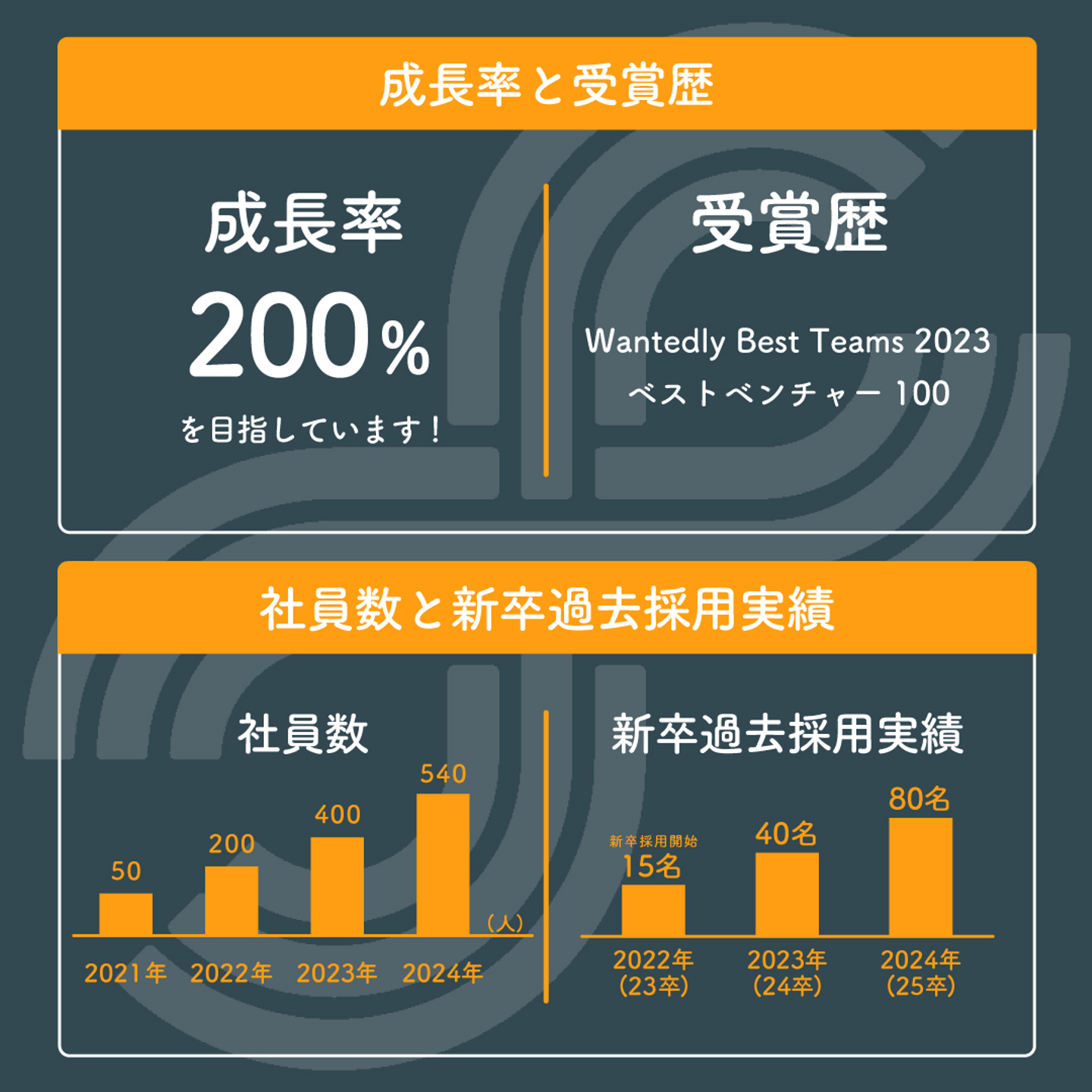 また、入社1年目で支店長や事業責任者として、支店発足や組織拡大が実現できるので、事業/組織の0→1→100を経験できます。今後は、現在の人材派遣・人材紹介事業・HRコンサルティング事業を全国展開し、異業種への参入も視野にいれ、この人材ビジネスを基盤に多角化経営を目指し、どんな環境にも常に変化し続けられる組織運営を目指します。