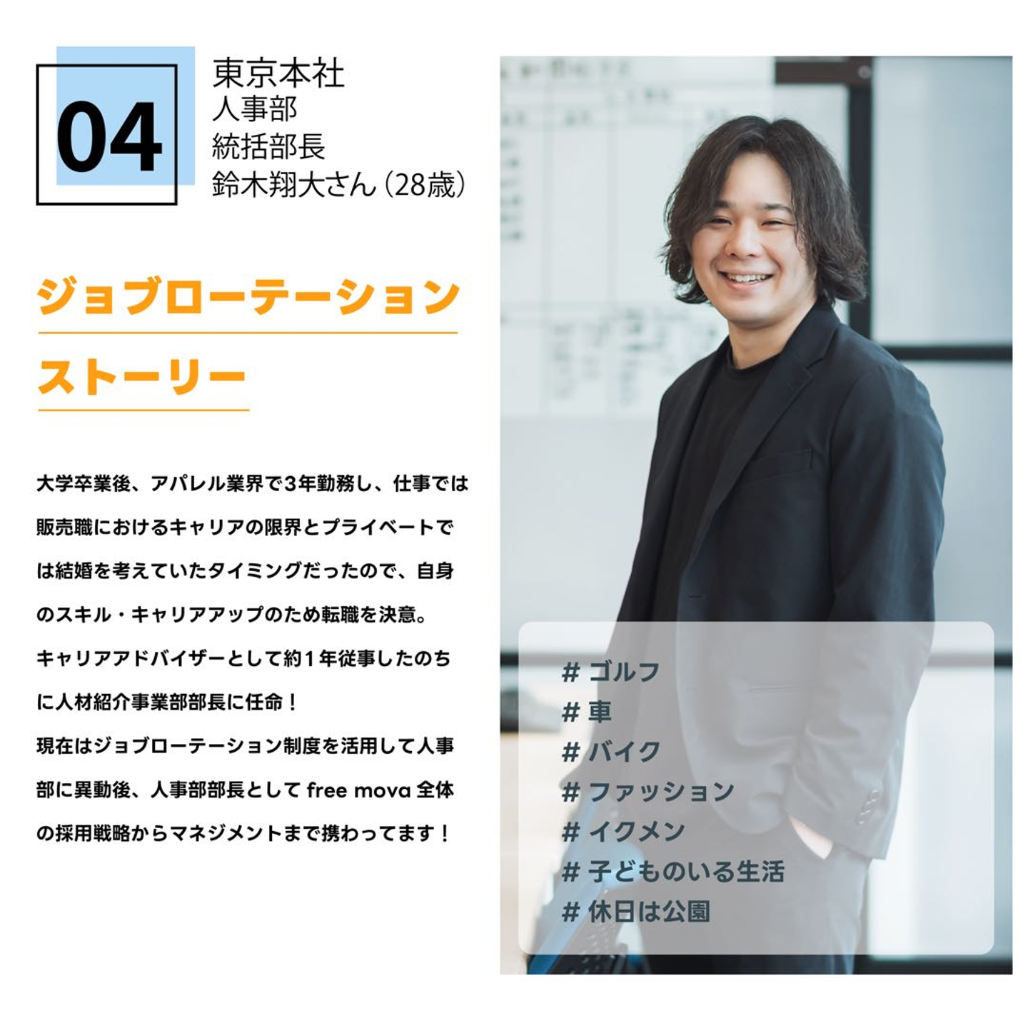 20代は職業選択が重要な時期であり、30代はいままでのあなたの経験やスキルで評価されるようになる過渡期とされていますが、当社では未経験者でも挑戦できる機会を創出・提供することで、自分でも想像していなかった新しい可能性を開くことができます。