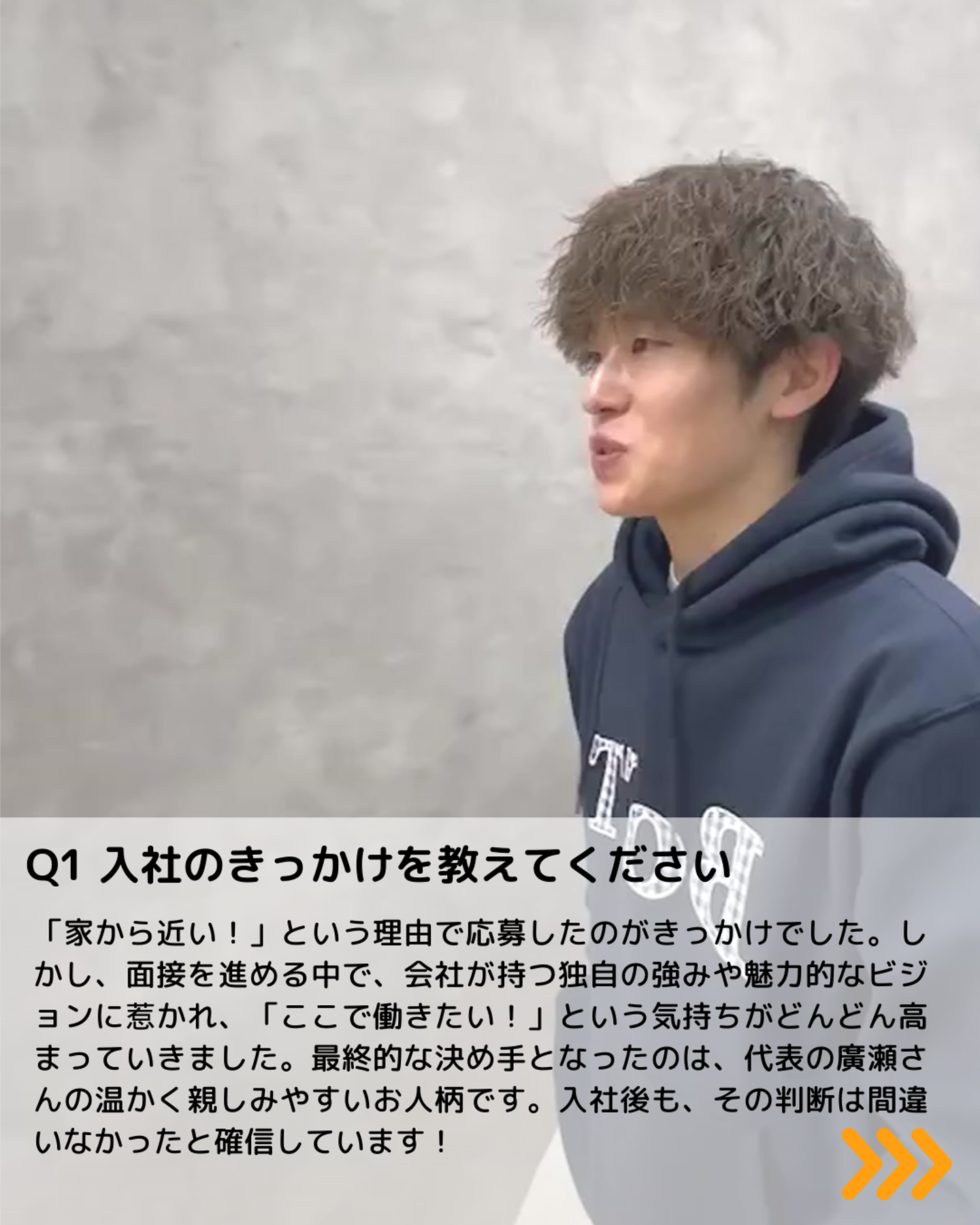Q1:freemovaへの入社きっかけと決めてを教えてください