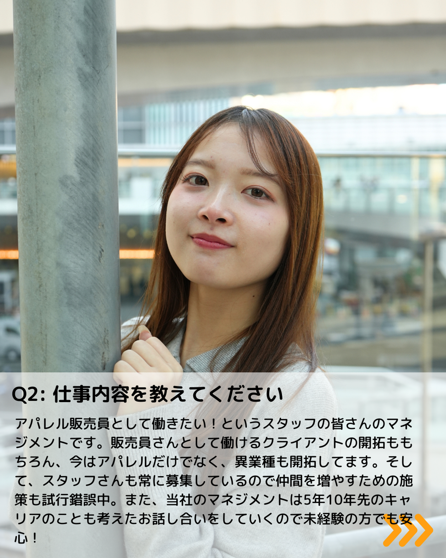 人材派遣事業部(アパレル)/キャリアコーディネーター・リーダーの水野さんのご紹介です!