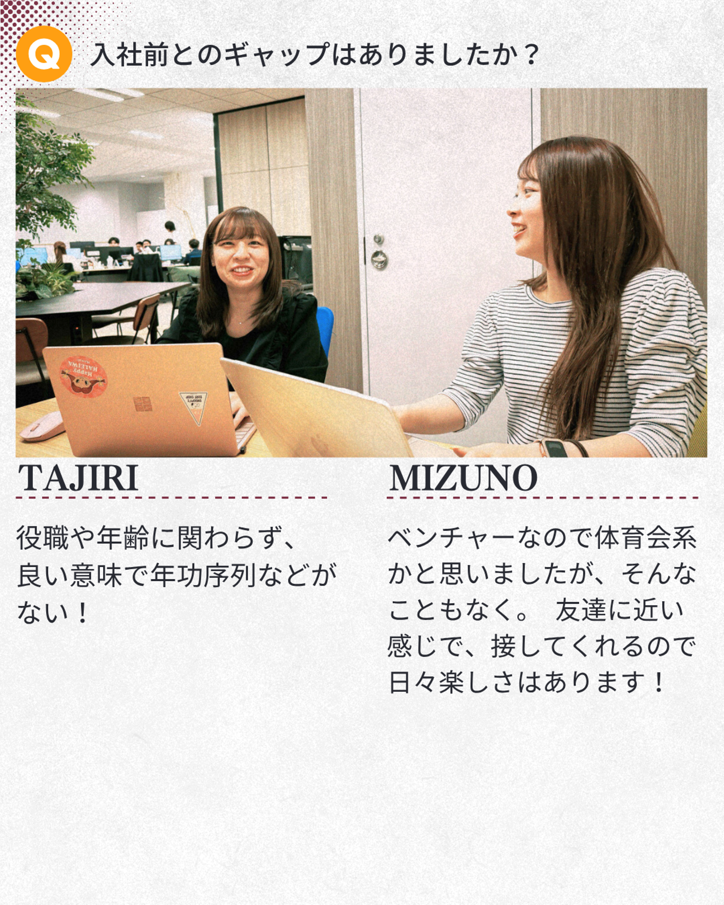Q:入社前とのギャップはありましたか?