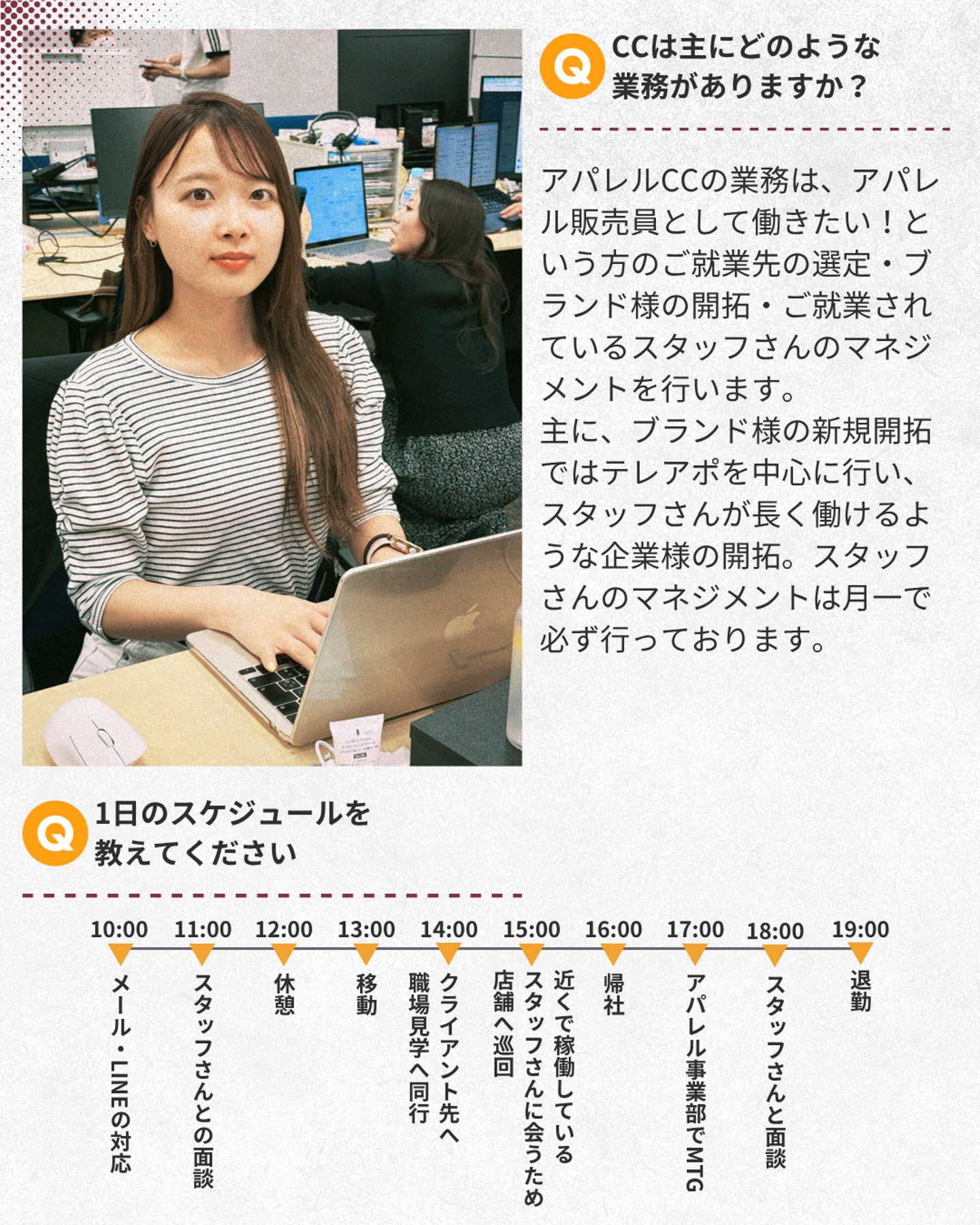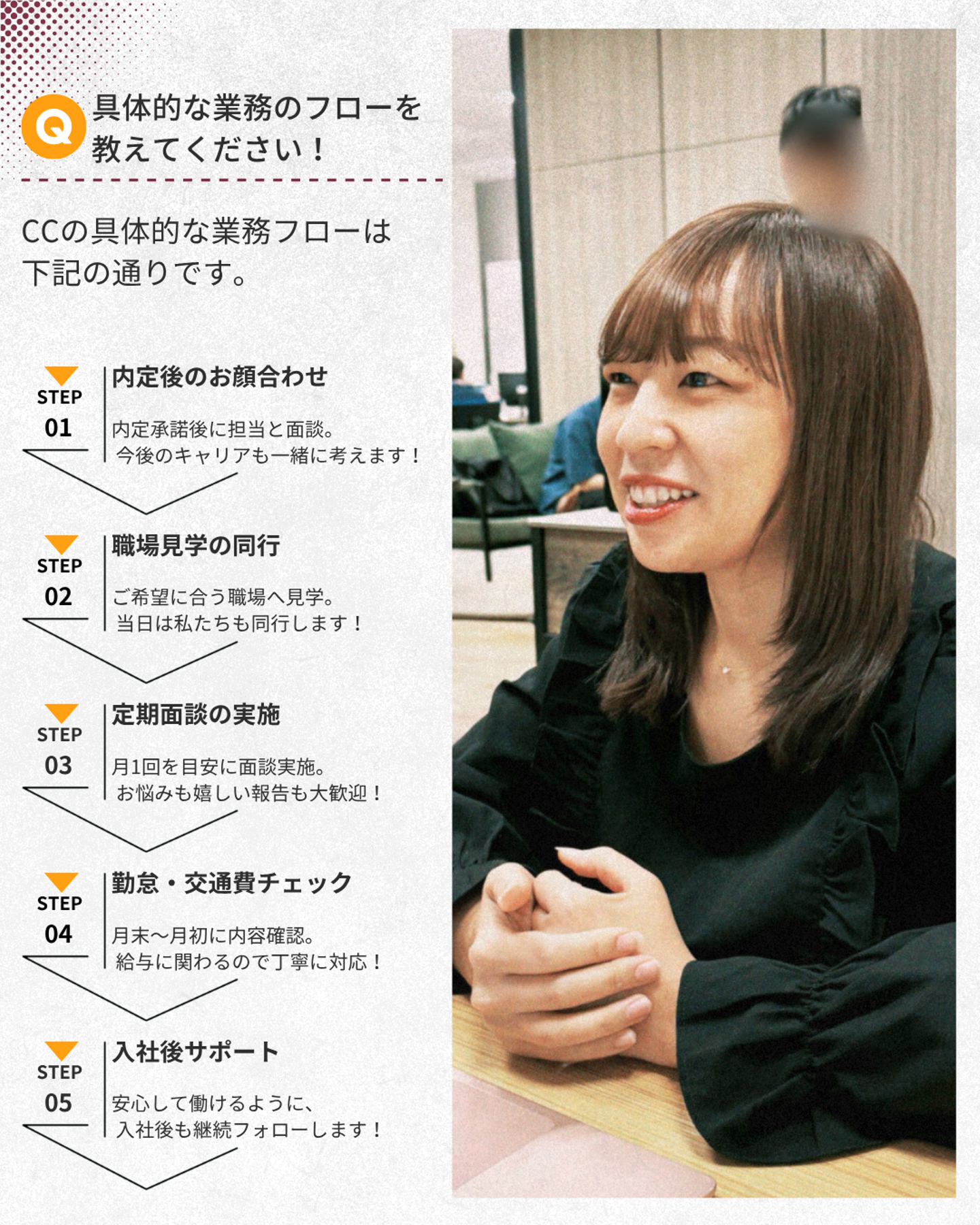 Q:具体的な業務のフローを教えてください!