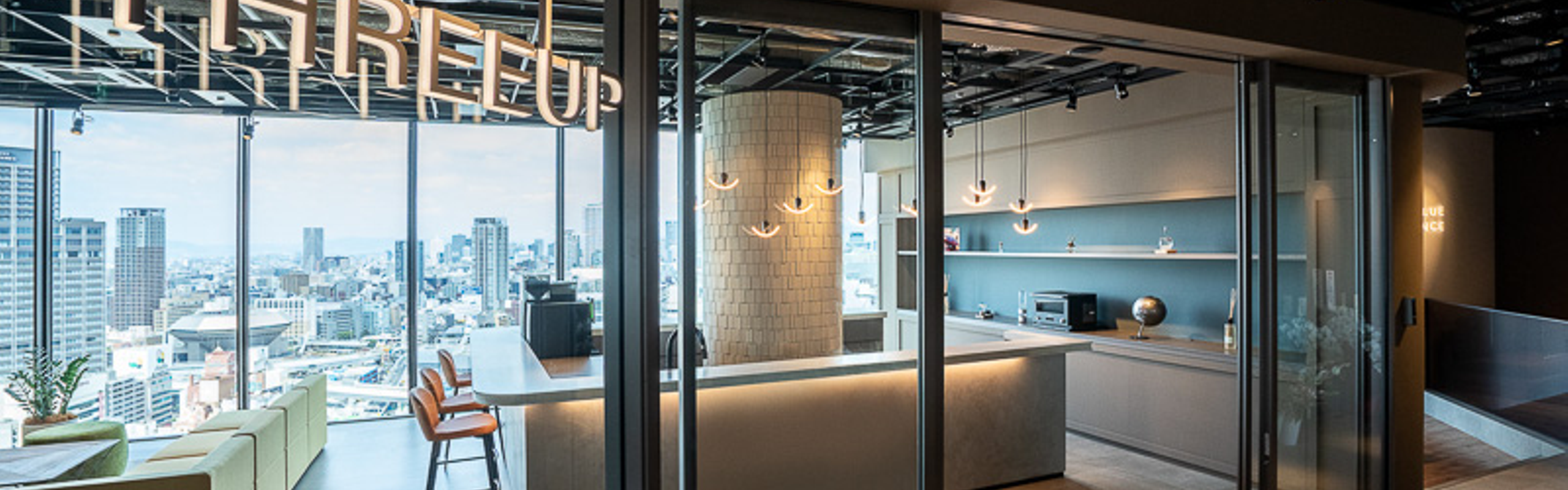 毎日がワクワクした気持ちで働くことができる組織とオフィス環境を目指して2020年8月になんばスカイオへの本社移転を行いました。東京オフィスの増床と開発部の移転拡張も同時に行いました。カルチャー浸透、コミュニケーション活性化のため、様々な制度や福利厚生があり、自席を持たないフリーアドレスを導入しています。