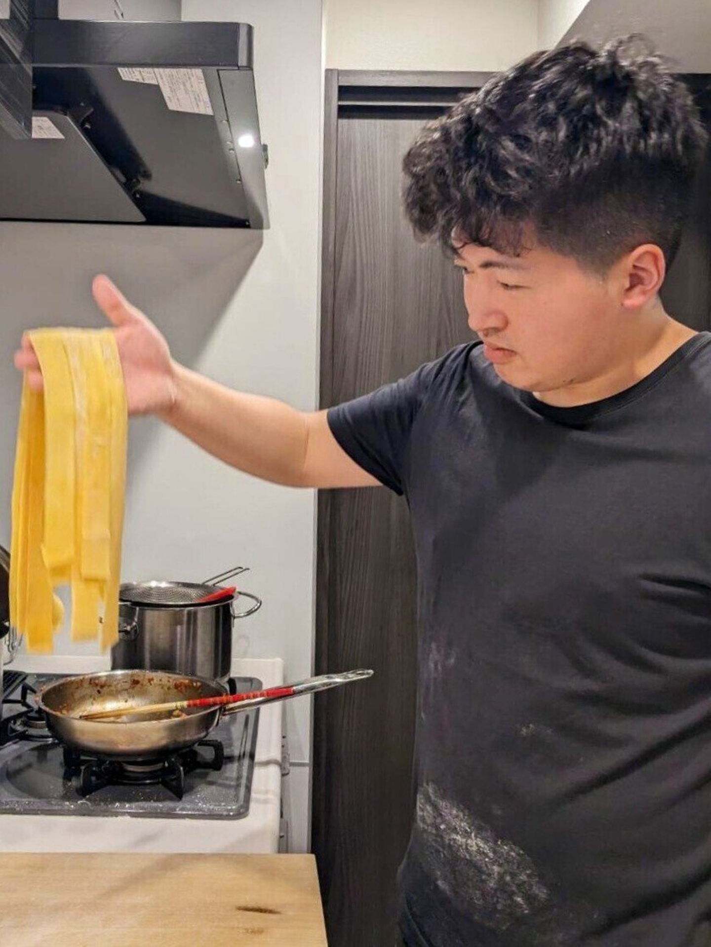自宅でもパスタを打つなど、今でもプロの料理人意識は忘れていない