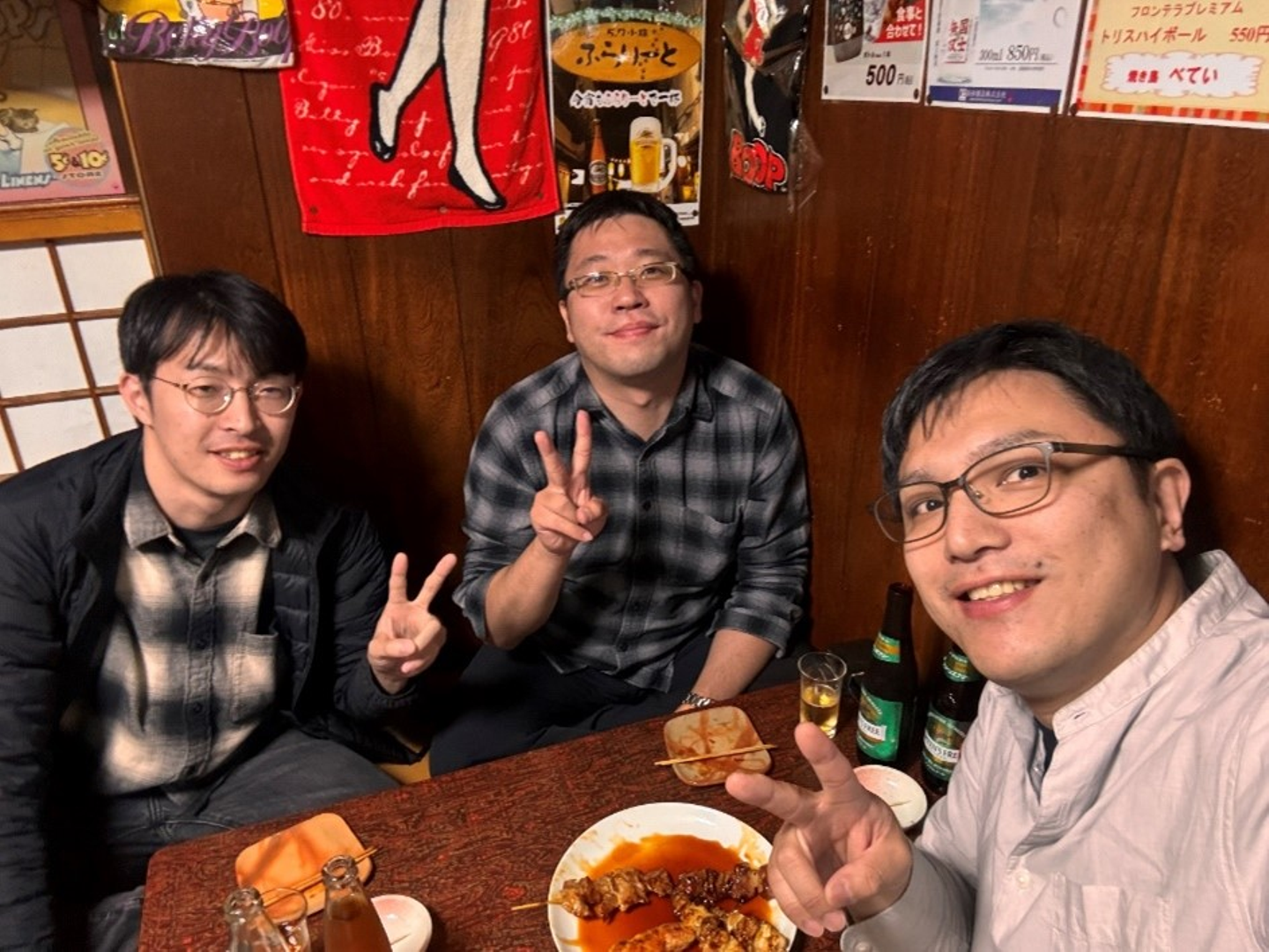 (岩松、栗原、上出の3名で昭和26年創業の焼き鳥屋へ)