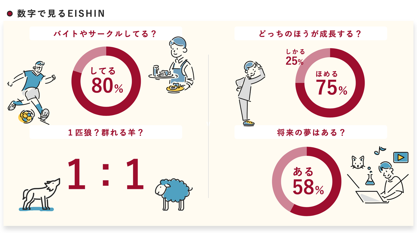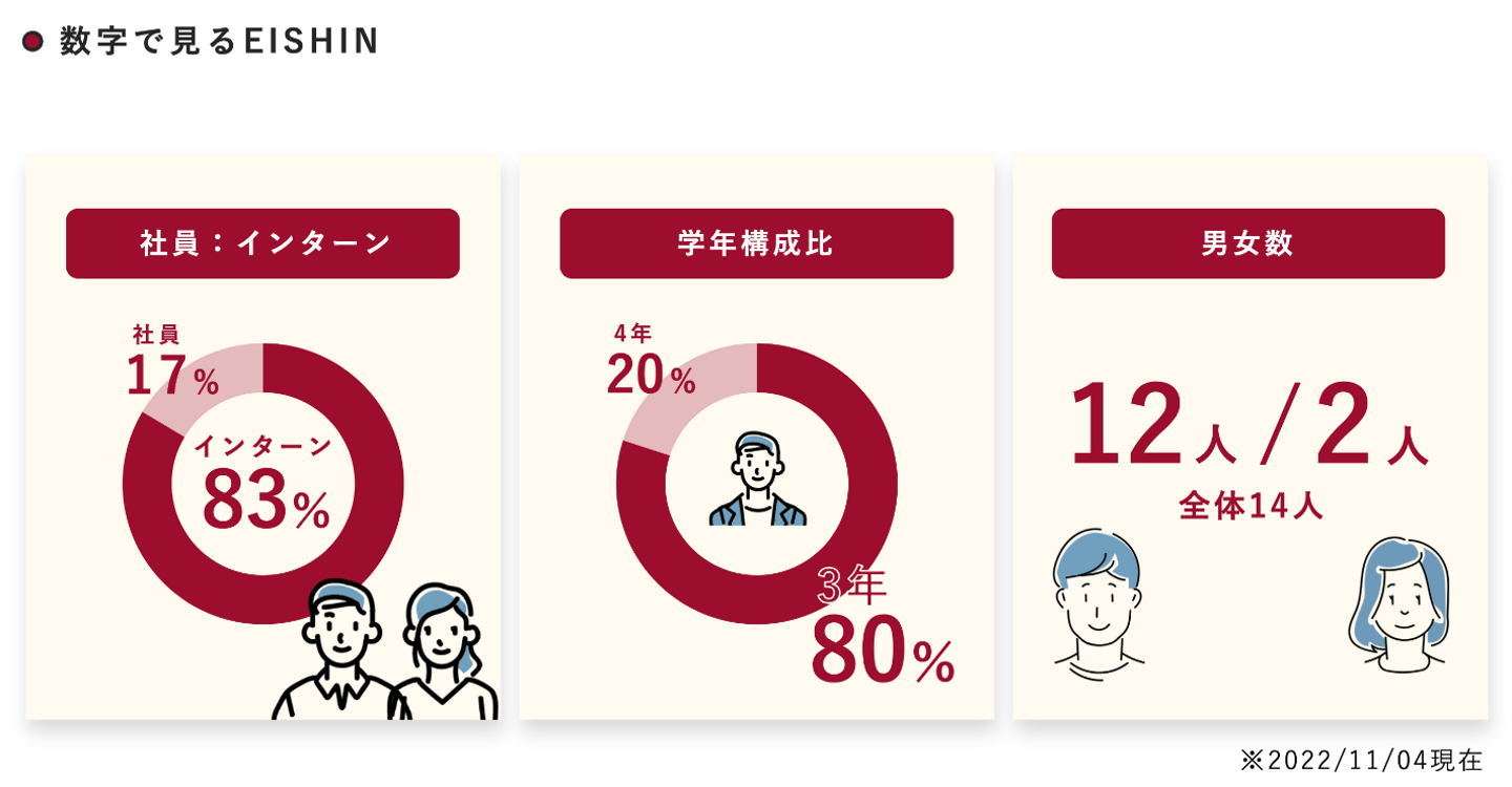 バイトやサークルをしながらEISHINで働いているのか、男女比は?などをまとめてみました。