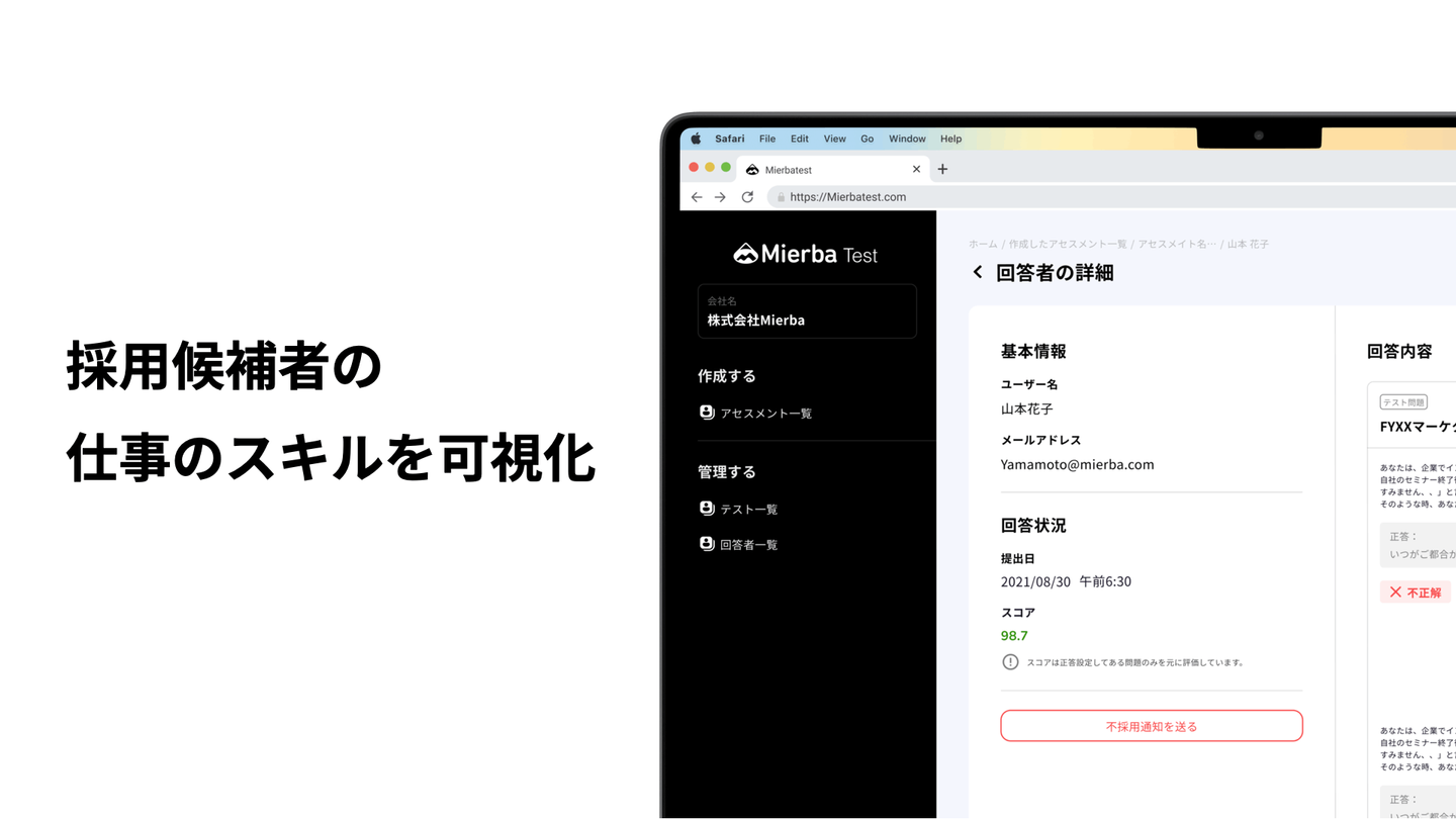 私たちは、「Mierba」という求職者と企業の最適なマッチングを実現するためのソリューションを提供していますが、私たちが大事にしていることの一つに、候補者体験を高めることがあります。