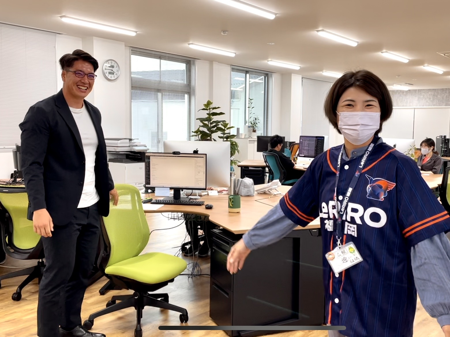殿元 もともと何かスキルを身につけて、そのスキルで仕事をしたいと思っていて、興味のあったWEB制作を独学で勉強していました。チームのスタッフ兼選手で、大学の先輩でもある黒川さんがスポンサー探しで丸信を訪問して、スポンサー契約が決まった時に、WEB制作に興味のある僕の話をしてくれて、それで丸信にもWEB部門があるということで受け入れていただきました。ちなみに、選手のほとんどがうきは市や久留米市の協賛企業などで働いています。